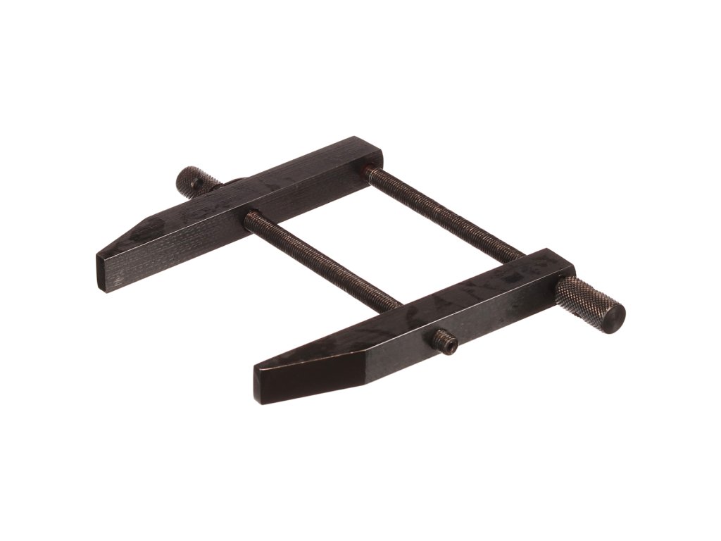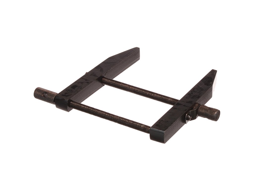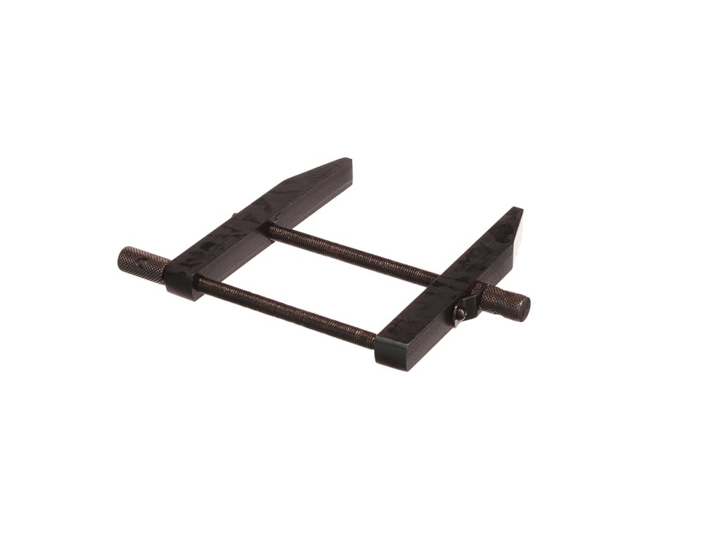 Jeklena objemka z zateznimi vijaki, ki omogočajo natančno in vzporedno vpenjanje čeljusti skozi dvojna vodila. Površinska zaščita s črnenjem, vpenjalni razpon do 100 mm, dolžina čeljusti je 150 mm, od tega je delovni del 73 mm. V valjasti glavi je ø5 mm luknja.