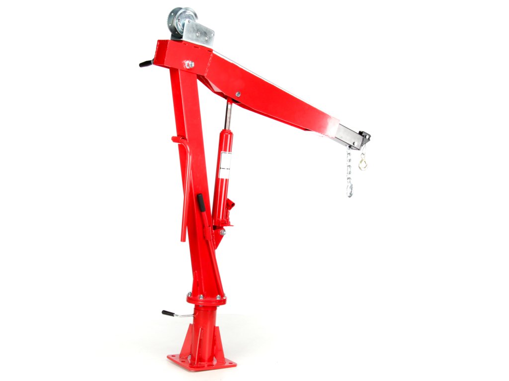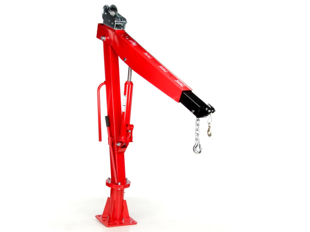 Praktičen žerjav, primeren za uporabo v delavnici, na rampi, pri težkih tovorih ali za montažo na zadnji del avtomobila. Lažje obremenitve je mogoče dvigniti tudi iz nižjih položajev z integriranim vitlom (dolžina vrvi s kavljem 9,4 m). Nosilnost do 900 kg, fiksni hod kljuke 400 – 1.770 mm, hidravlični dvig roke, podaljšek roke dolžine 1.200 – 1.830 mm. 360° vrtljiva podlaga. Skupna višina 1.430 mm, kvadratna montažna podlaga 270 mm, vpenjalna luknja 20 mm, razmik 105 mm.