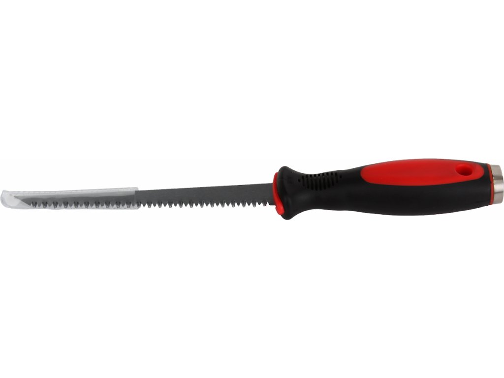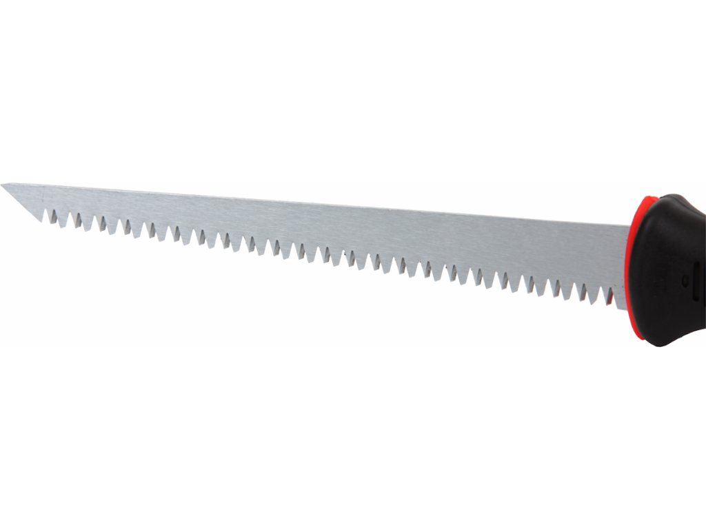 Ročna žaga za les, suhomontažne in iverne plošče s tremi vrstami zob za lažje rezanje. Ergonomski ročaj s funkcijo kladiva. Dolžina rezila 152 mm.