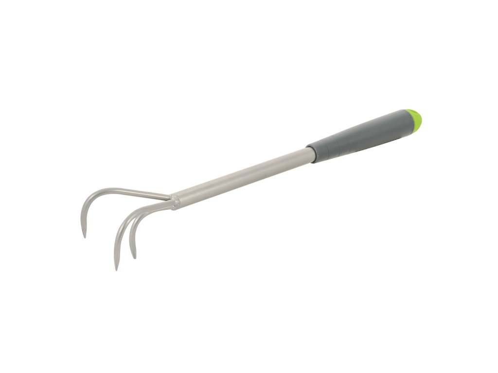 Ročni kultivator s 3 kosi, barvano črno prašno barvano, odporno proti koroziji. Plastični ročaj z visečo luknjo. Glava D × W: 60 × 65 mm.