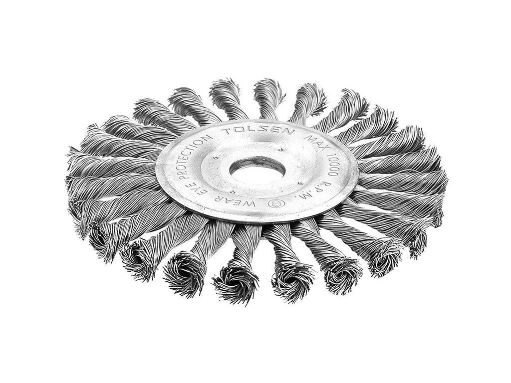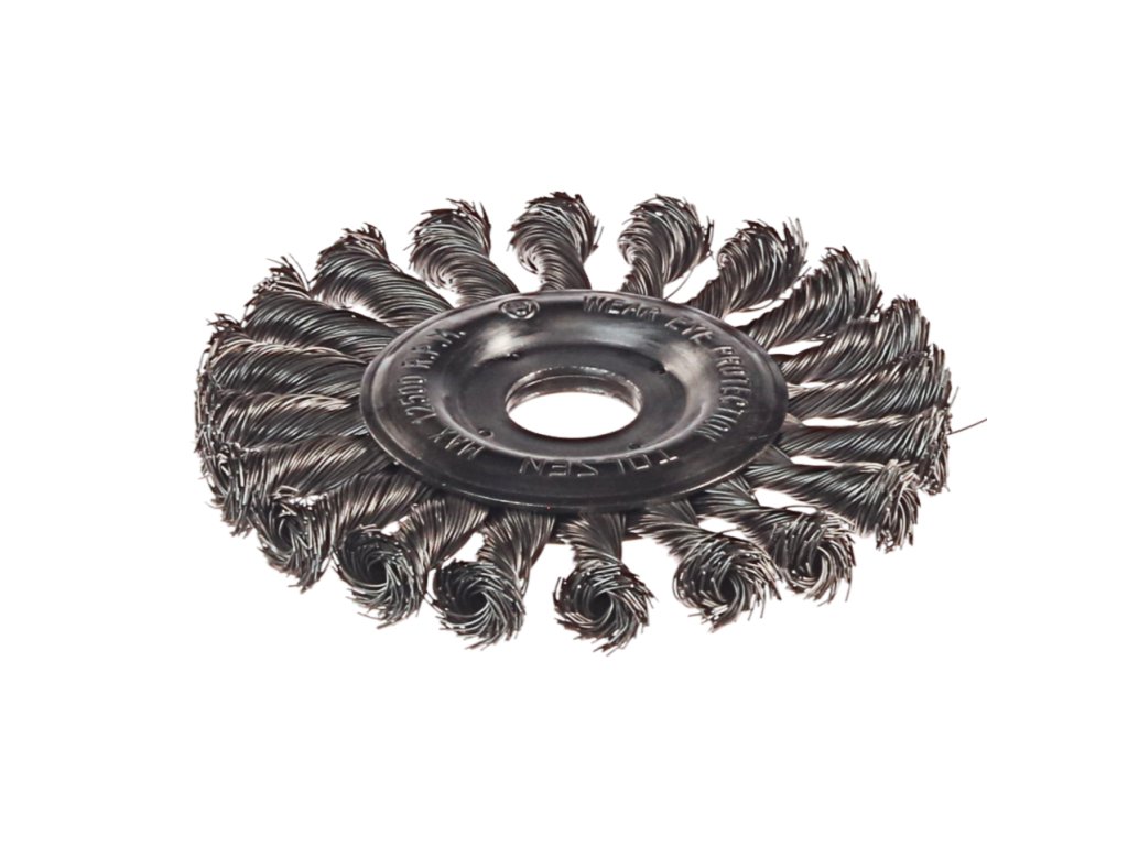 Idealno za odstranjevanje rje in barve s kovinskih površin. Premer žice: 0,5 mm, premer krtače 125 mm, luknja Ø22,2 mm, največja hitrost 12500 vrt / min.