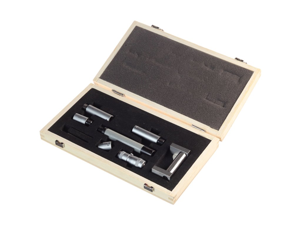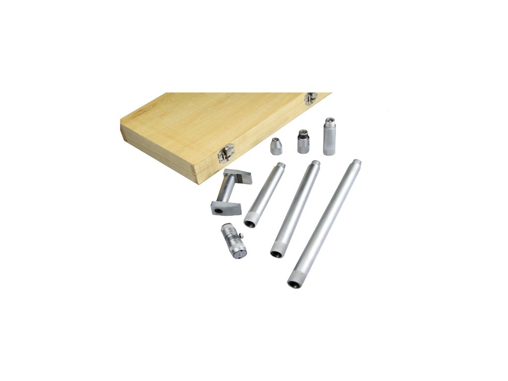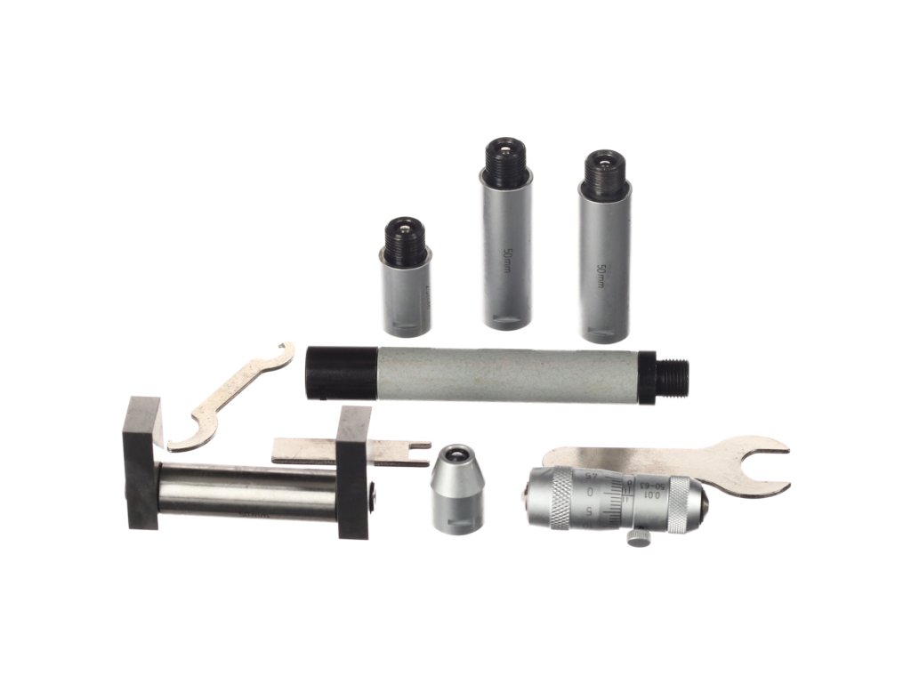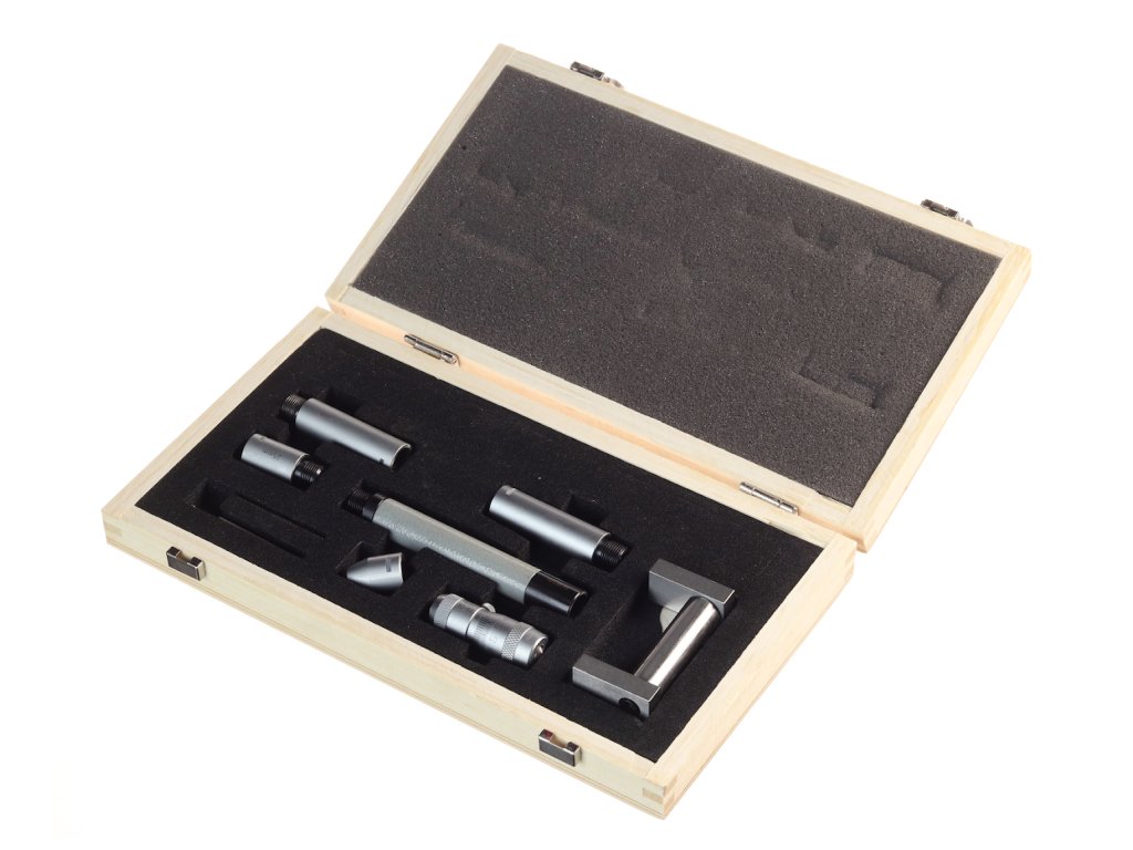 Zagotavlja širok spekter meritev v kombinaciji s priloženimi priključki, glavo mikrometra in osnovnim merilnikom za nastavitev nič. Natančnost 0,01 mm. Domet 50 – 300 mm. Komplet vključuje: S-ključ, osnovni merilnik 50 mm, priključke in glavo mikrometra 50 - 63 mm. Dobavljeno v leseni škatli.