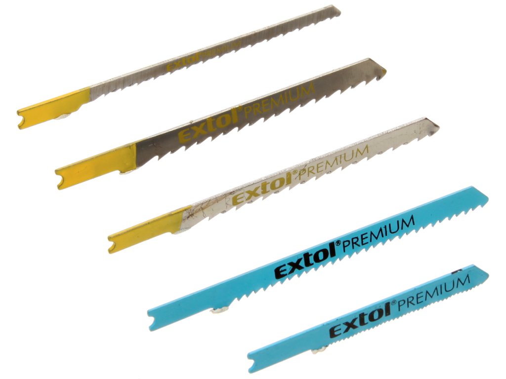 Komplet 5 rezil vbodne žage z univerzalnim nastavkom iz dvokovinskih, HSS in HCS materialov različnih oblik zob je namenjen za rezanje lesa, plastike in kovine.