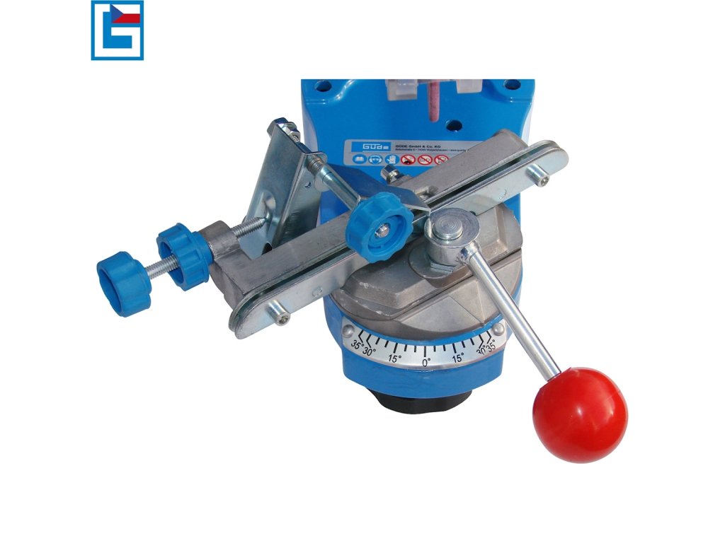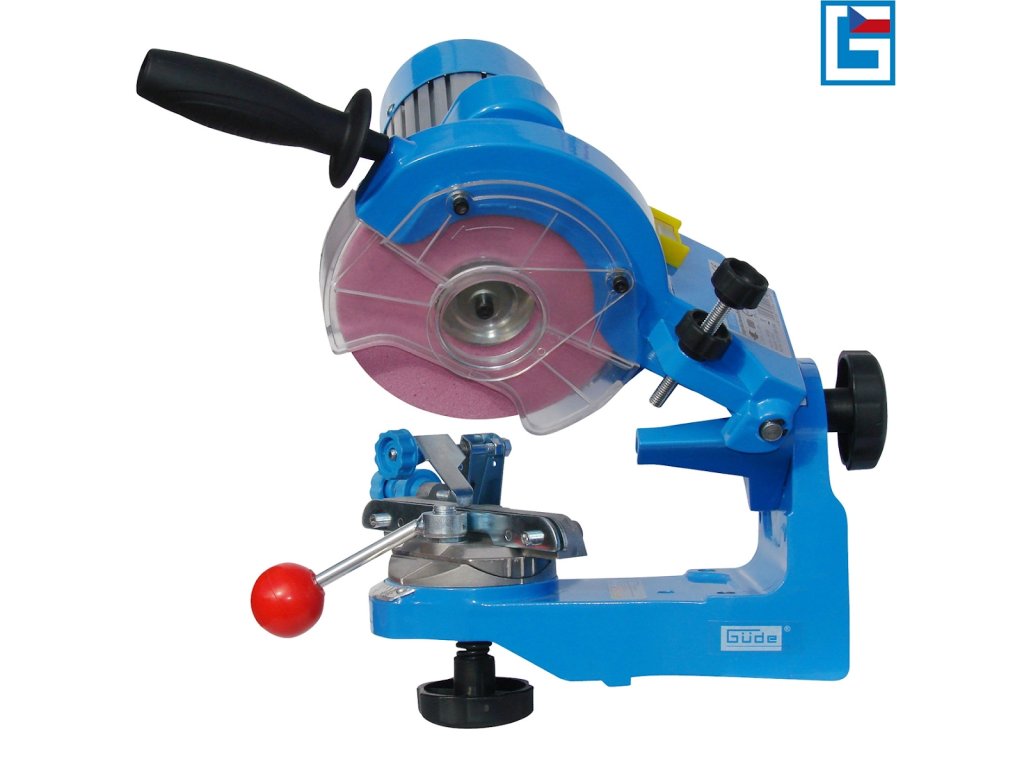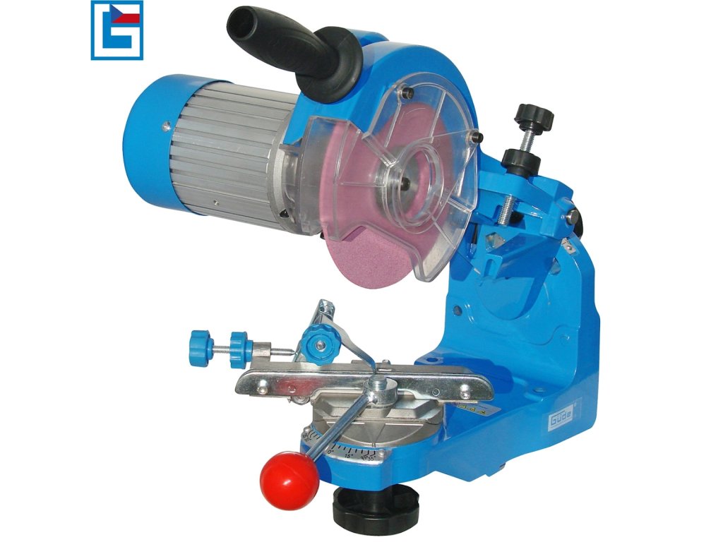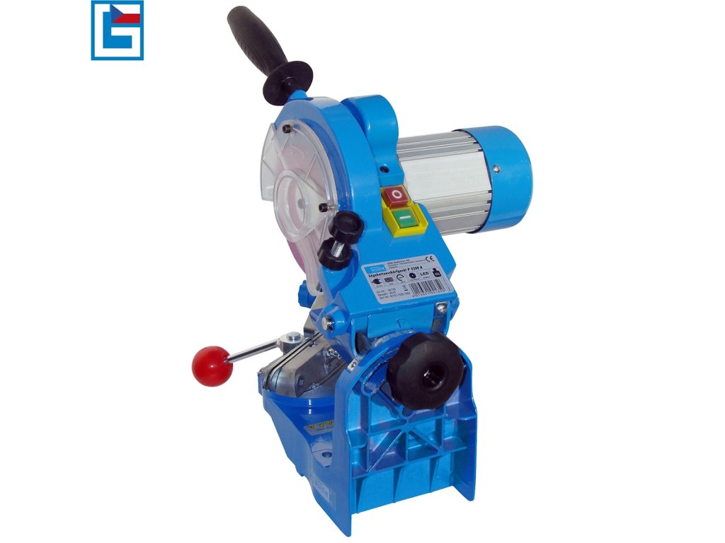 Fina nastavitev/zanesljiva pritrditev ozemljitvene verige, ostrenje na obeh straneh vseh verižnih členov zaradi nagibne glave za brušenje (90 - 50°) in vrtljivega vpenjalnega mehanizma, vodilni ročaj za natančno vodenje brusnega kolesa do ostrih zob.