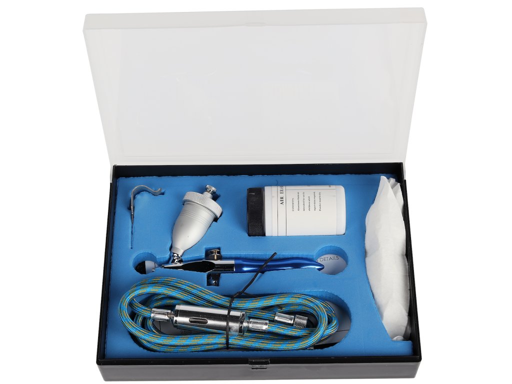 Miniaturna vsestranska peskalna pištola je še posebej primerna za popravilo okvarjenega laka, odstranjevanje manjše korozije, čistilnih komponent, peskalnih okraskov v različnih materialih, vključno s steklom in gravirnimi monogrami. Uporablja se na primer v litografiji za poudarjanje poltonov ali pri modeliranju. Prostornina posode 15 cm³, delovni tlak 2 – 4,5 bara, dolžina cevi 2 m, šoba ø 0,5 mm. Komplet vključuje: peskalno pištolo, cev, držalo za pištolo, abrazivno kartušo in respirator.