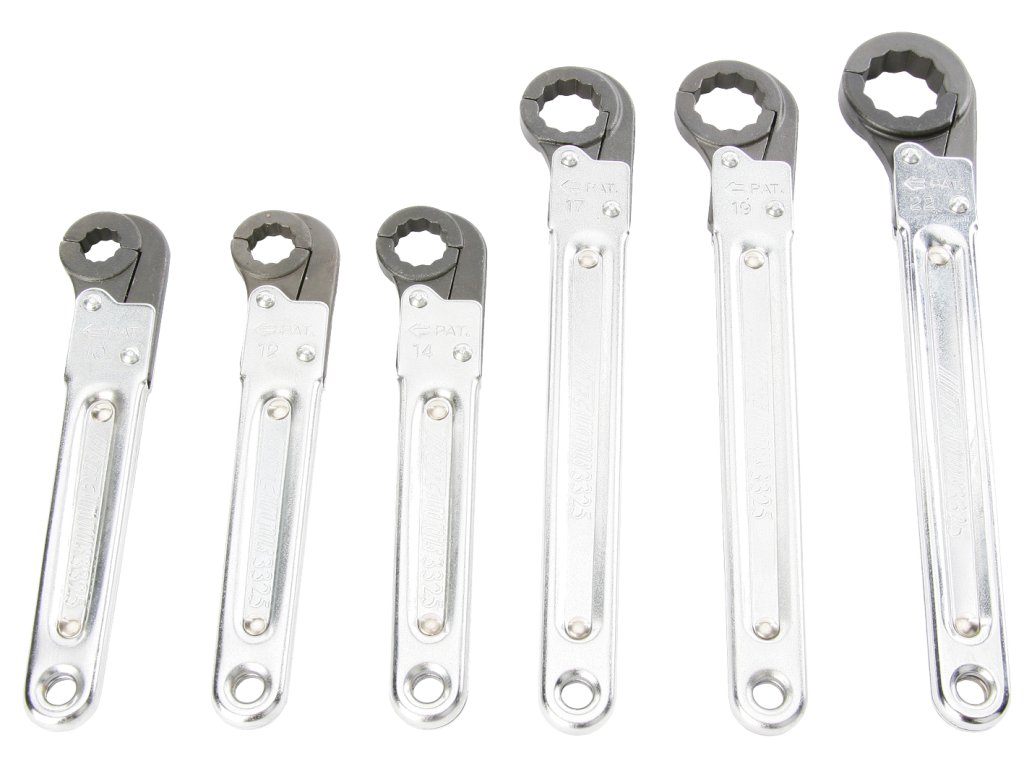 Zaprti ključi z razcepljenim obročem 10, 12, 14, 17, 19 in 22 mm so izdelani iz jekla CrMo. Še posebej primerna za cevne prirobnice in spojke. V primerjavi s ključavnico ne more zdrsniti in poškodovati matice.
