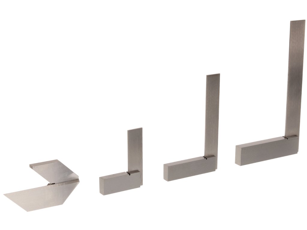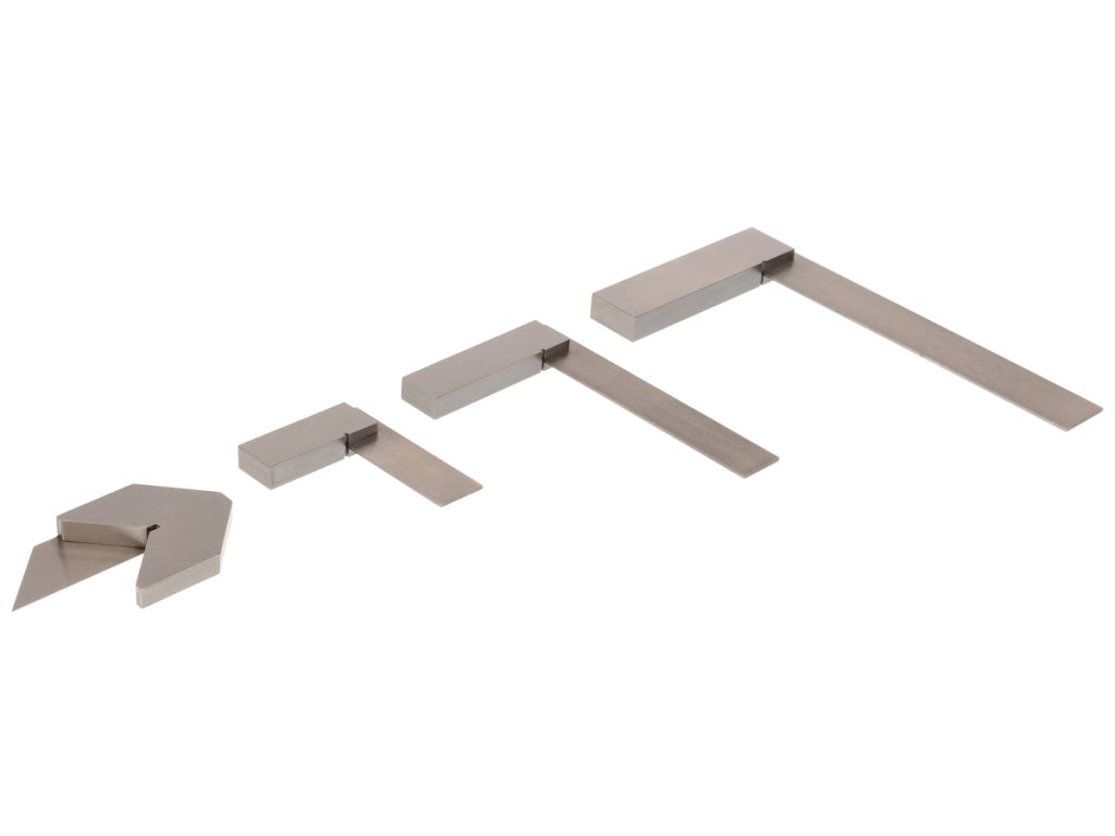 Komplet vsebuje prizmatični ravnilo za določanje središča hloda in 3 fiksne kote rezalnika 50 mm, 100 mm in 150 mm