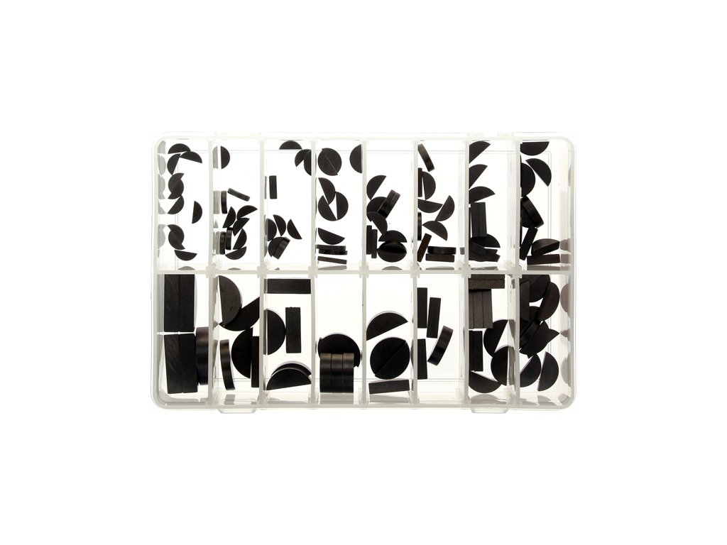 Vsebuje 130 kosov polkrožnih jeklenih vzmeti dimenzij 2 × 13; 3 × 13; 4 × 13; 2.5 × 16; 3 × 16; 4 × 16; 4 × 19; 5 × 19; 4 × 22; 5 × 22; 6 × 22; 5 × 25; 6 × 25; 8 × 25; 5 × 28 in 8 × 32 mm. Zasnovani so tako, da gred povežejo s kolesom. Lepo shranjeno v plastični škatli.