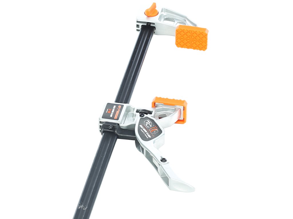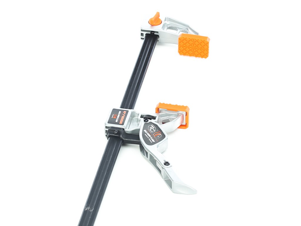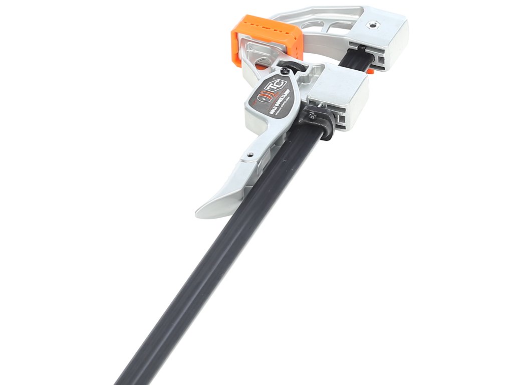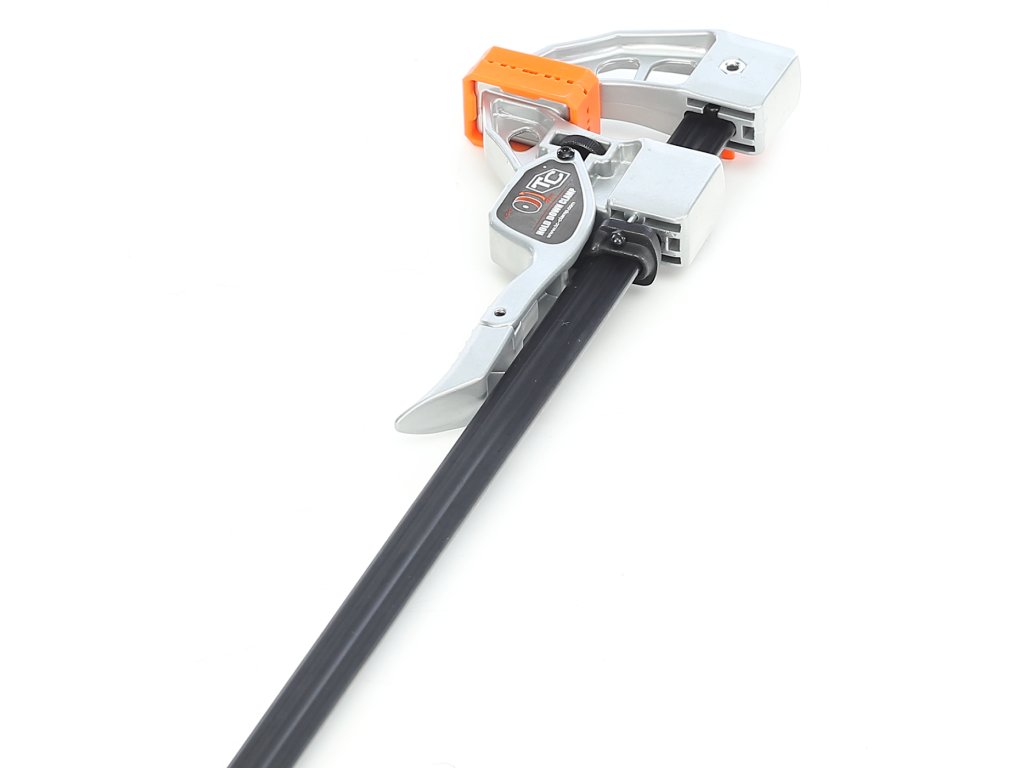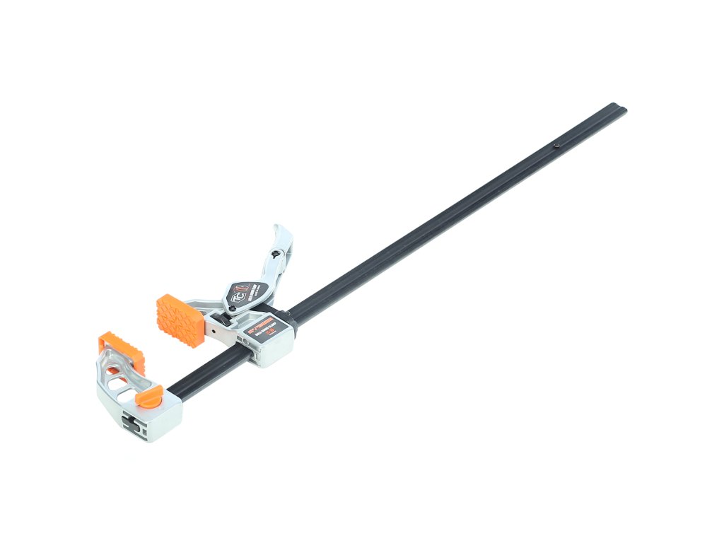 Odlična, lahka, enoročna objemka. Hitro vpenjanje z eno roko. Razpon 450 mm. Vpenjalna sila 320 kg. Material: vodilna palica - ogljikovo jeklo, karoserija - aluminijeva zlitina.