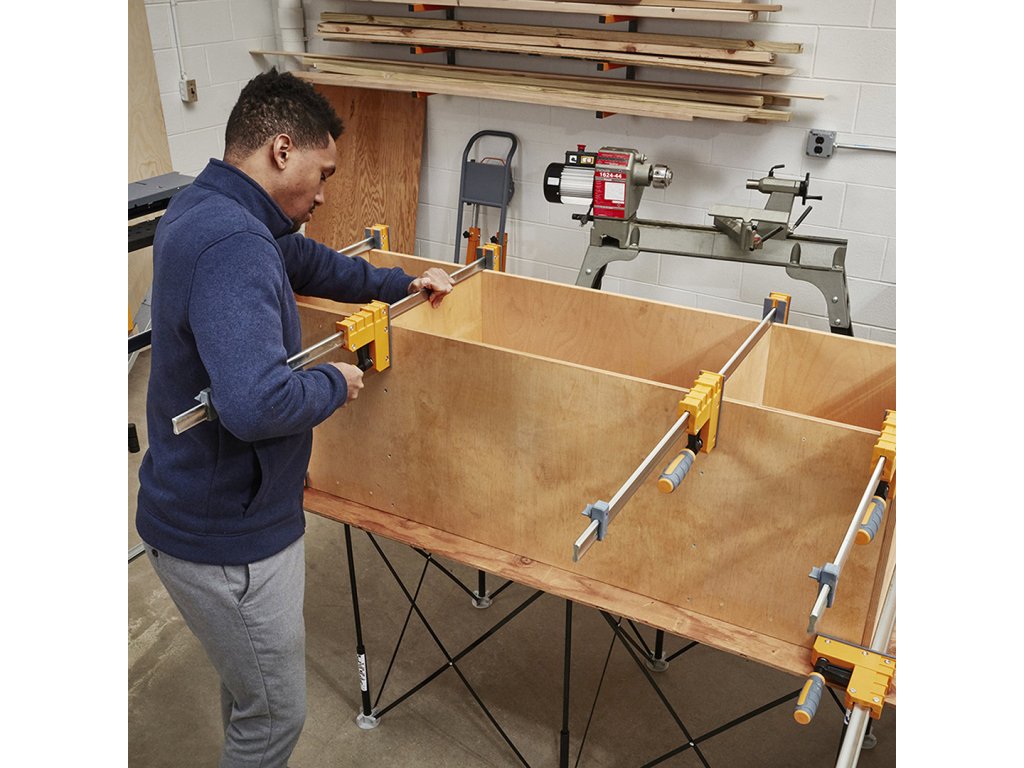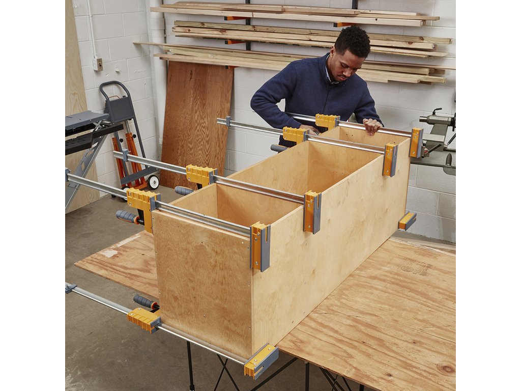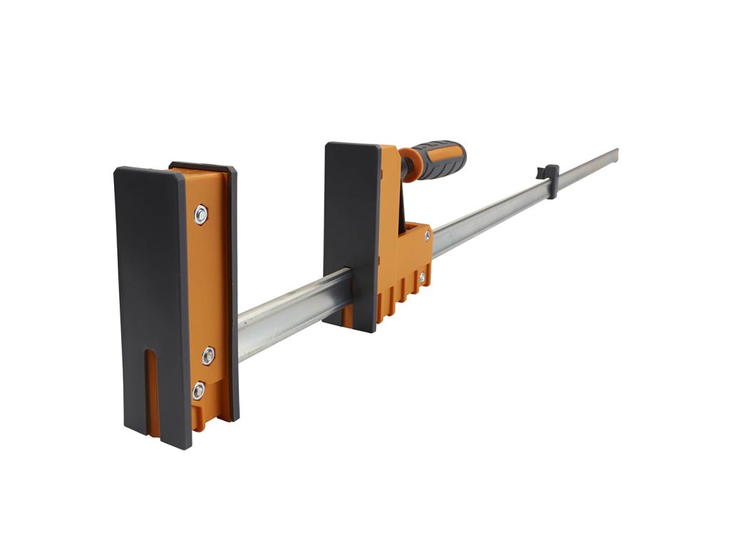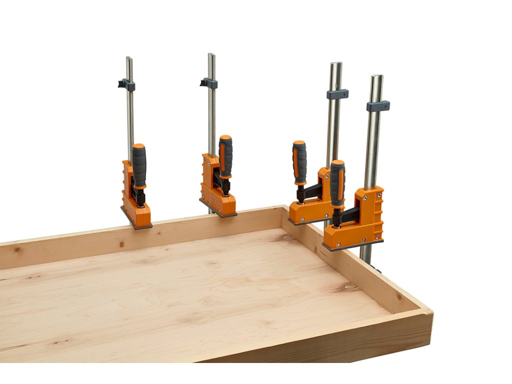 Mizarska vzporedna objemka, ki vam omogoča hitro in enakomerno uporabo zahtevanega tlaka brez nevarnosti poškodbe materiala. Vrtljiva glava vam omogoča, da orodje spremenite v ekspanzijsko objemko. Čeljust se lahko zaklene na mestu z velikim ročajem, ki je enostaven za oprijem. Uporabite ga lahko povsod, kjer je treba nekaj zategniti, držati ali opreti. Primerno za mizarje, mizarje ali domače mojstre. Največji razpon 30 cm.