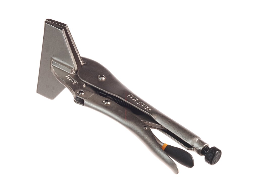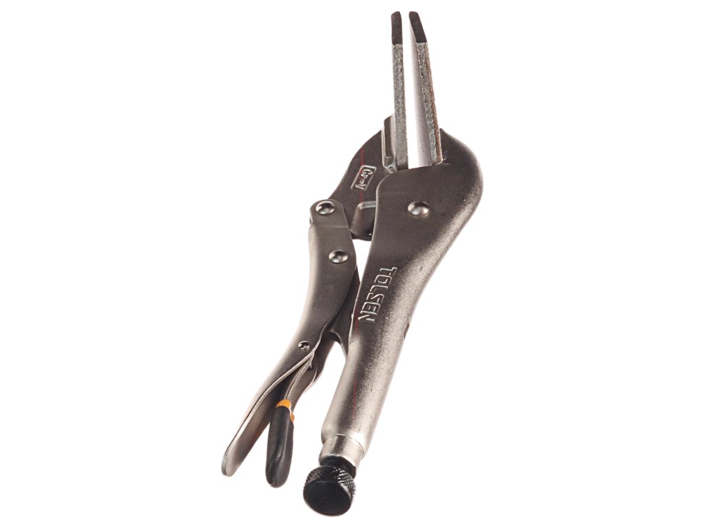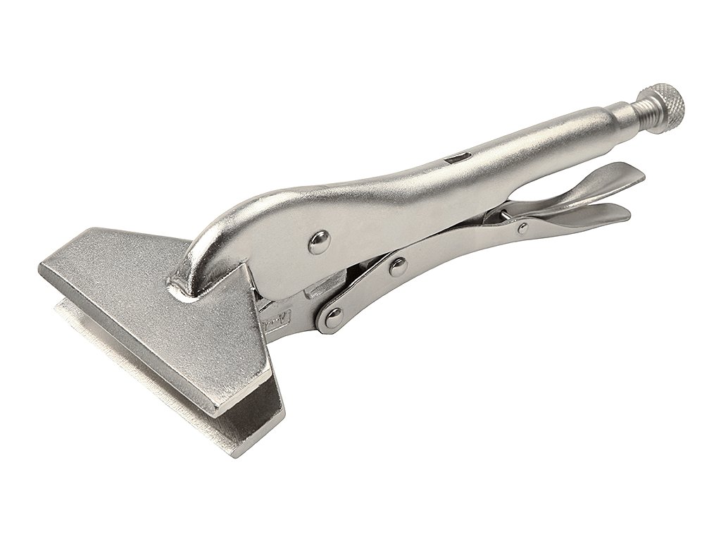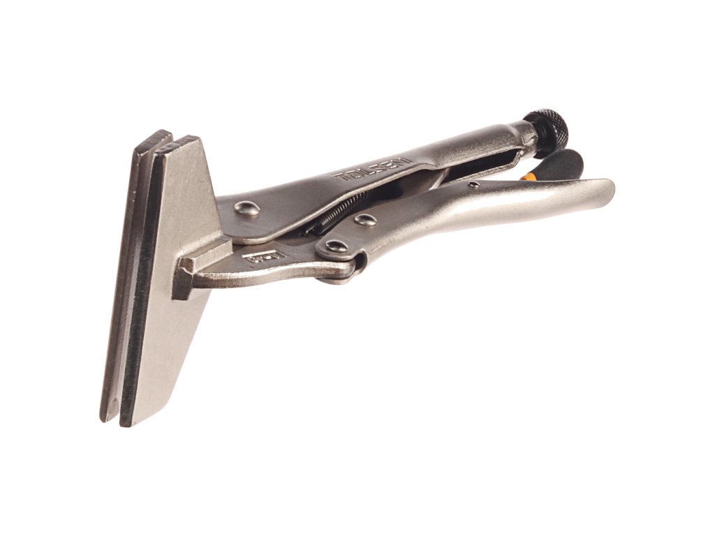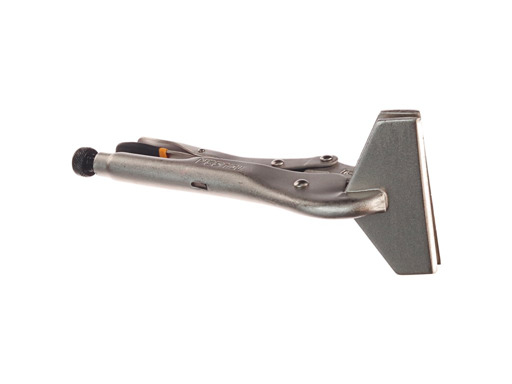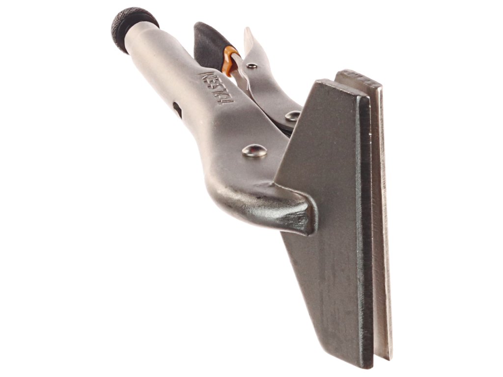Zanesljivo pritrdijo dva materiala in ga rahlo sprostijo s pritiskom na vzvod. Širina čeljusti 100 mm; globina 50 mm; največja odprtina 15 mm. Material: utrjeno ogljikovo jeklo, ponikljana površina. Skupna dolžina 255 mm.