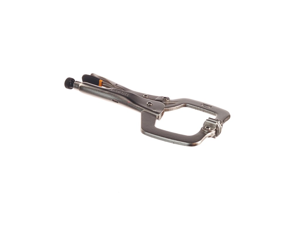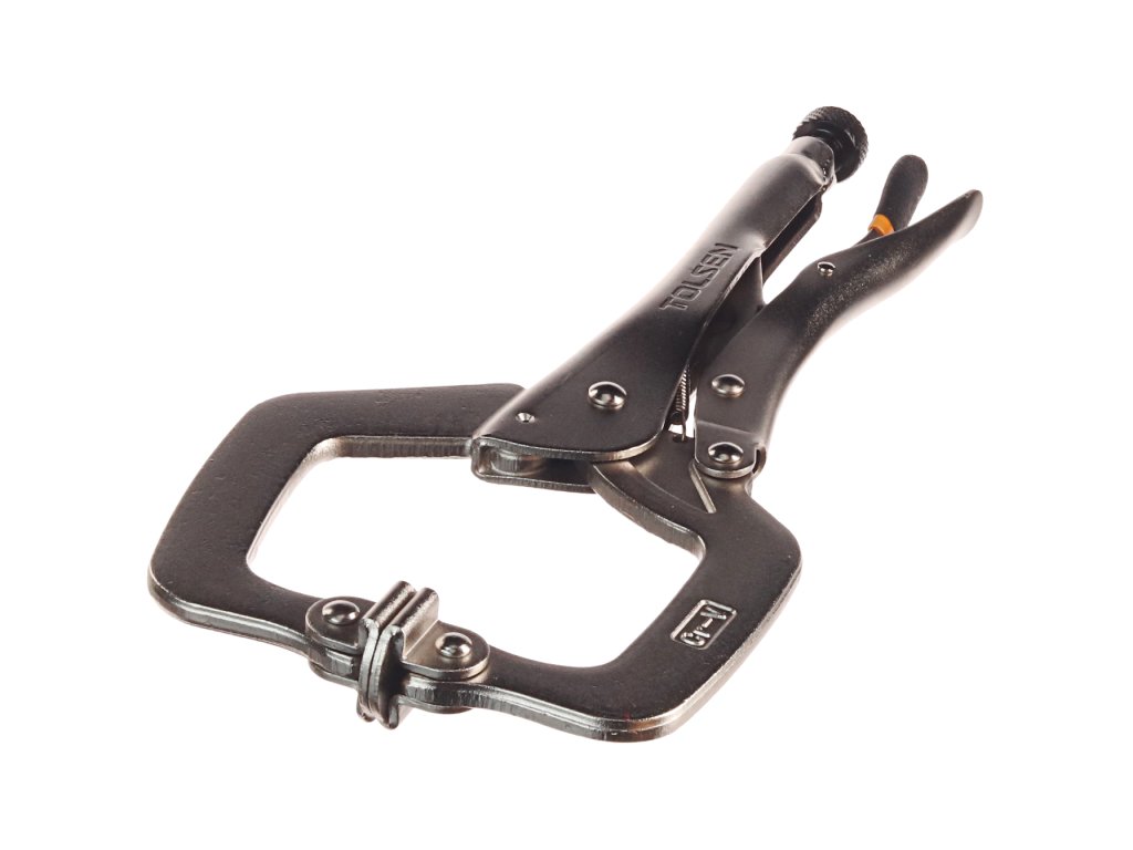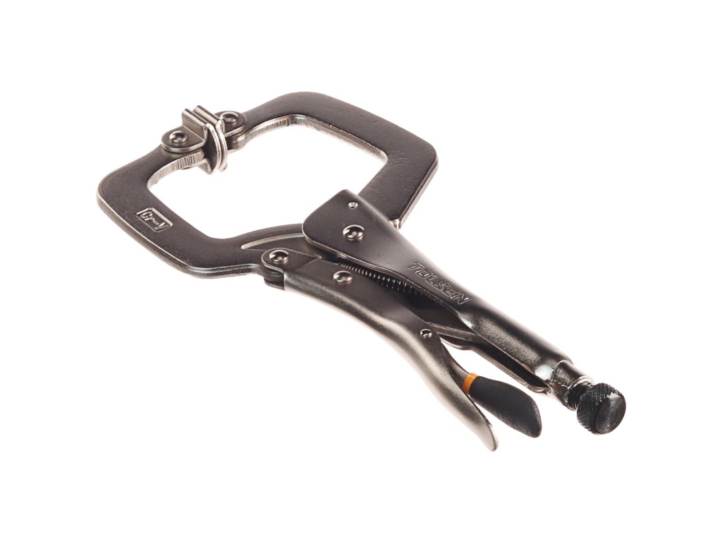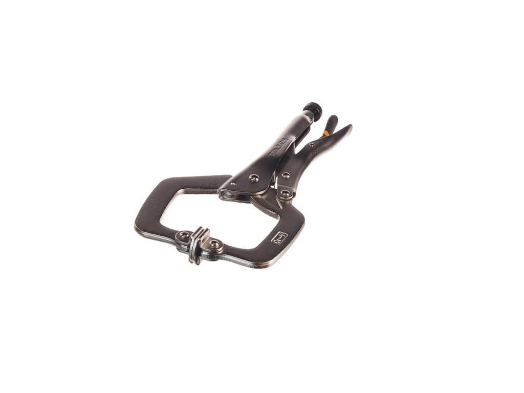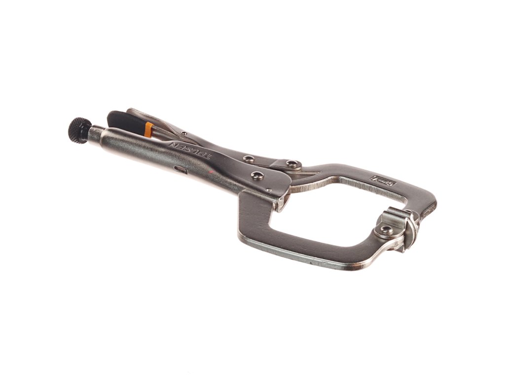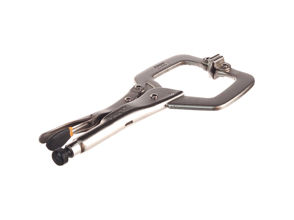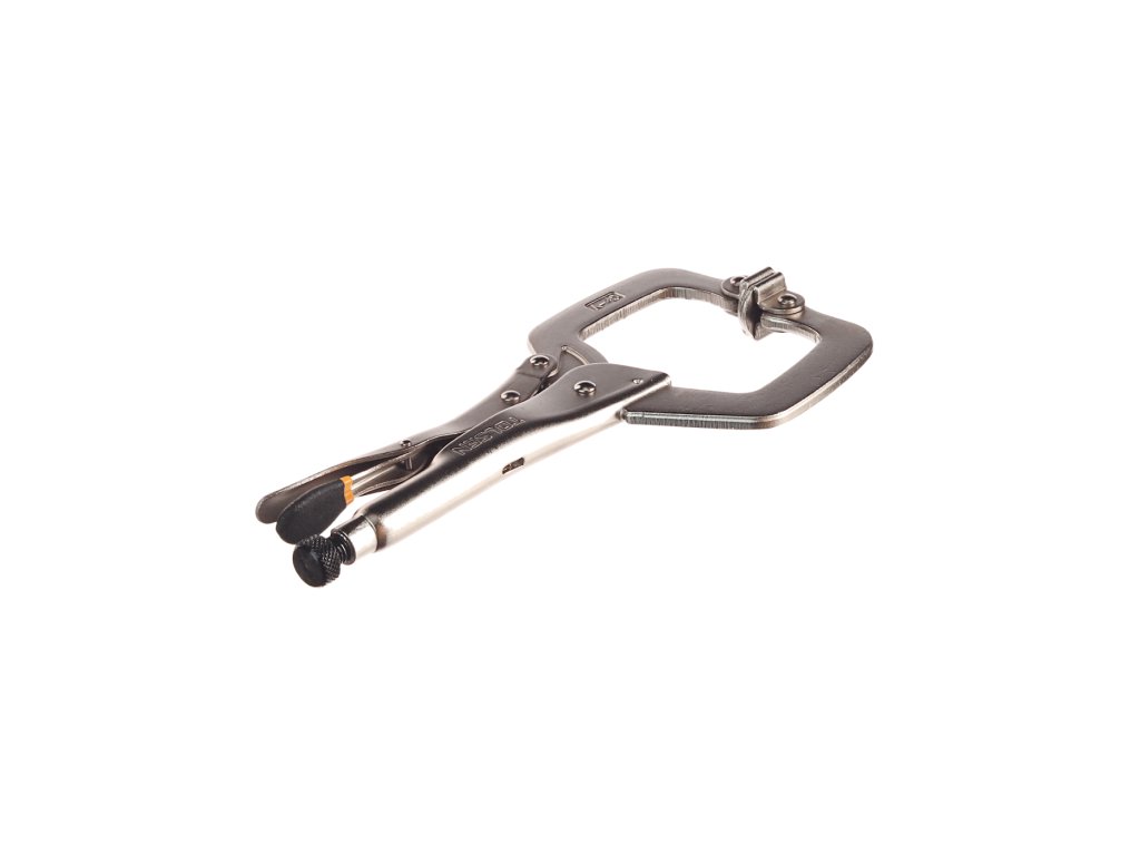 Praktične klešče v obliki črke C za večjo variabilnost uporabe. Skupna dolžina klešč 280 mm, maks. odprtina čeljusti 90 mm, delovna odprtina 60 mm.
