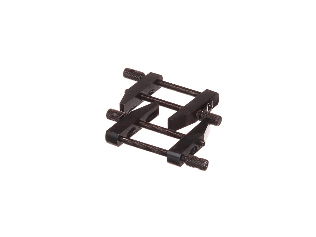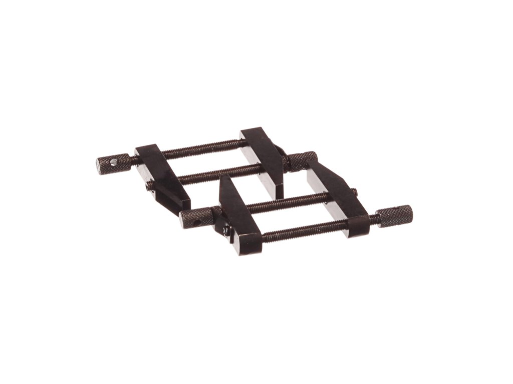 Jeklena objemka z zateznimi vijaki, ki omogočajo natančno in vzporedno vpenjanje čeljusti skozi dvojna vodila. Površinska zaščita s črnenjem, vpenjalni razpon do 50 mm, dolžina čeljusti 62 mm, od tega 25 mm delovni del. V valjasti glavi gležnja vijakov Ø3,6 mm je luknja.