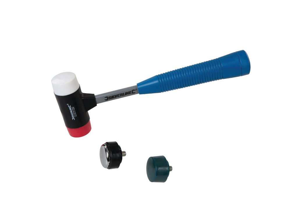 Zamenljive najlonske glave s premerom 35 mm, jekleni ročaj z visokim oprijemom je odporen na olja in kemikalije. Paket vsebuje 3 × najlonske glave in 1 × kovinsko glavo.