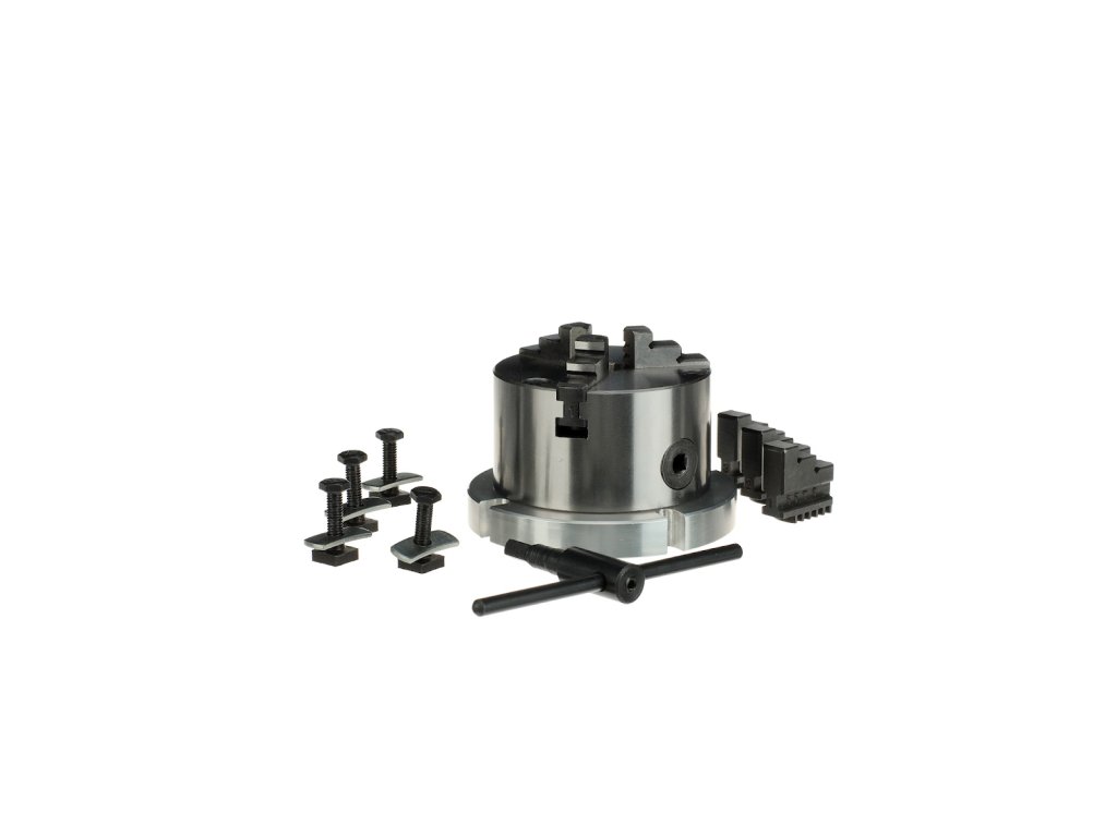 Koncentrična vpenjalna glava je opremljena s štirimi režami za vpenjanje na ploščo z režami "T". Vpenjalni premer 90 mm.