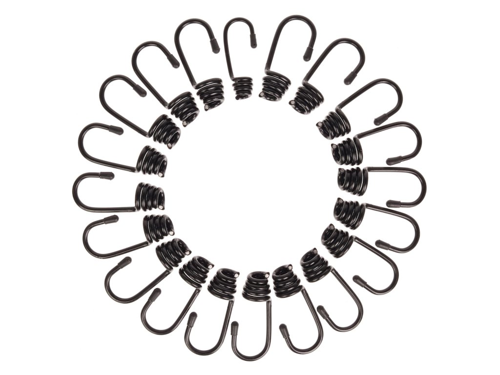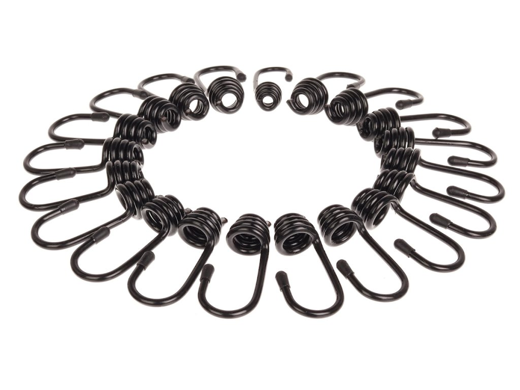 Kovinski kavlji s plastičnim pokrovom za zaščito pred korozijo in z luknjo za elastični trak ø 8 mm vol. Št. 10000. Paket vsebuje 20 kosov.