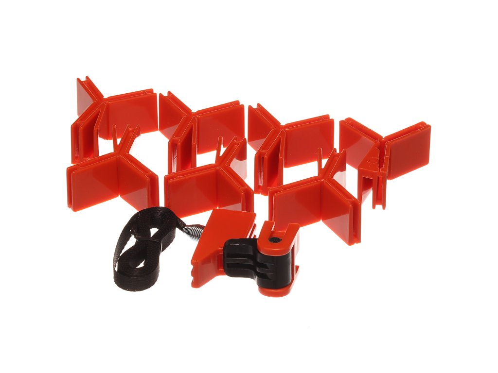 Odlično orodje za lepljenje okvirjev. Komplet plastičnih profilov zagotavlja fleksibilnost vpenjanja okvirjev različnih velikosti. S pomočjo napenjalnega pasu je okvir med lepljenjem popolnoma pritrjen. Primerna je tudi za popravilo majhnega pohištva, kot so stoli in stoli. Komplet vključuje 7 vogalov s 3 velikostmi kotov: 90°; 120° in 135° ter kabelska vezica dolžine 2 m in širine 8 mm. Pakirano v pretisnem omotu.