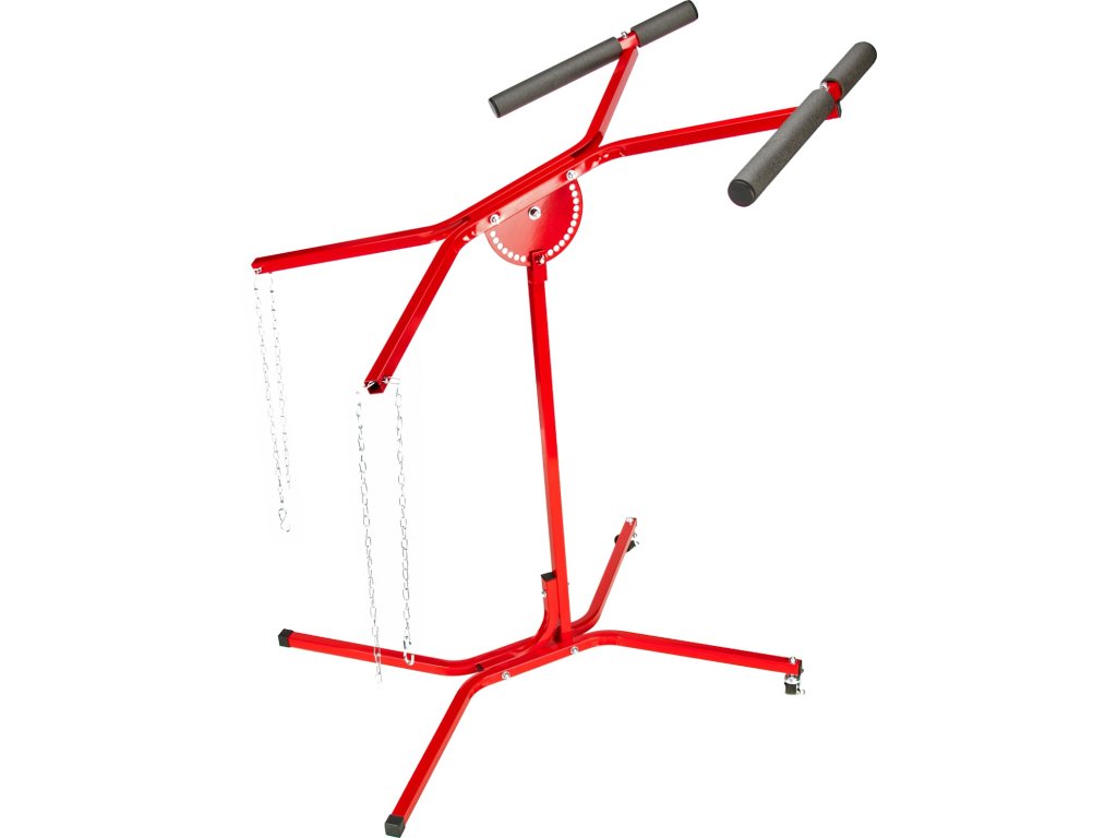 Mobilno stojalo za pritrditev odbijača ali sprednje rešetke pri tesnjenju, brušenju, prikrivanju in škropljenju. Podporni valji z mehko oblogo so nastavljivi in pritrjeni z dvema verigama s kavlji.