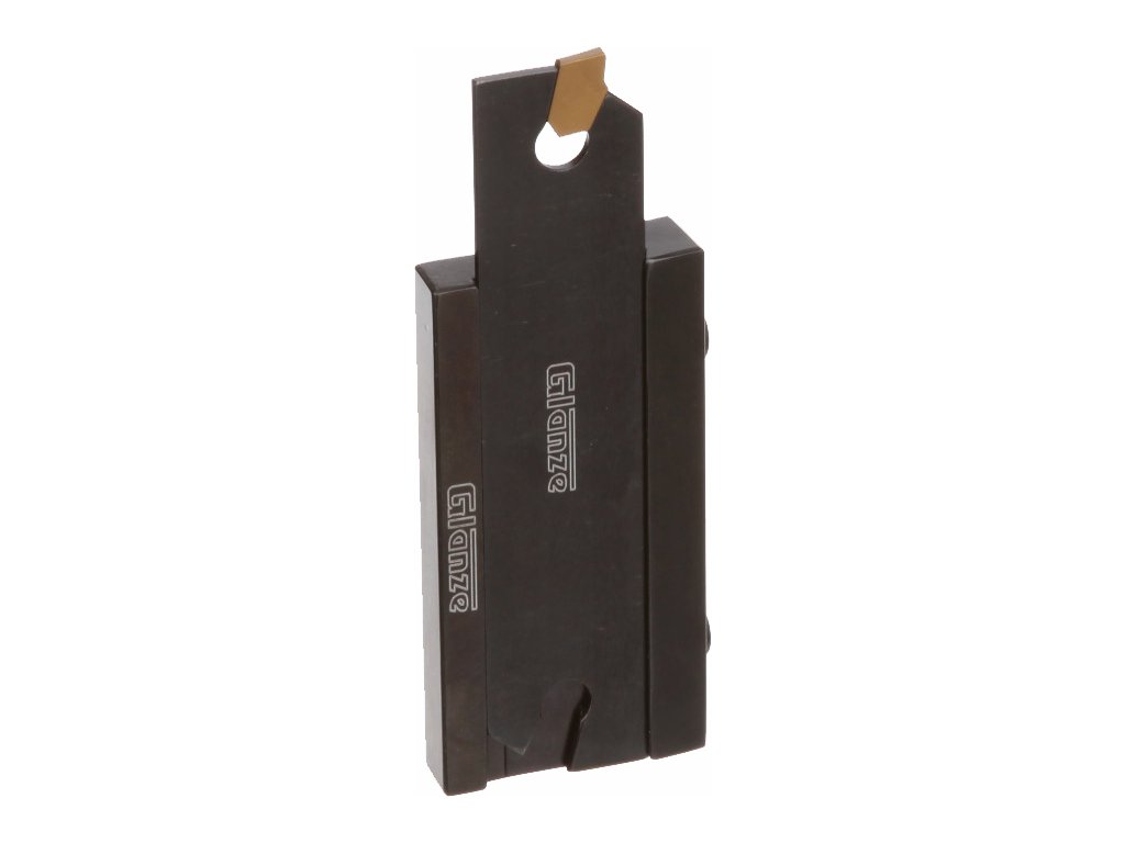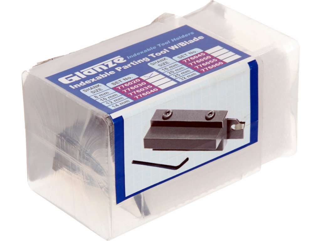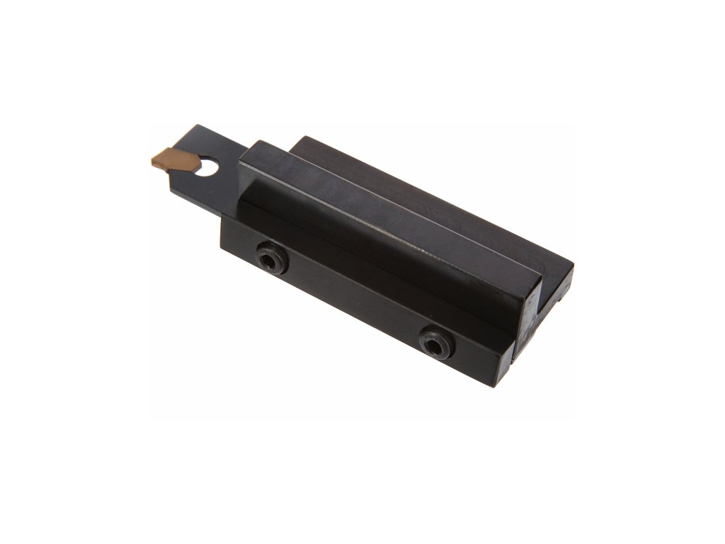 Sklop rezila za ločitev (SET). Rezilo je sestavljeno iz jeklenega držala, dvostranskega vzmetnega jeklenega rezila in indeksiranega karbidnega vložka. Rezilo je pritrjeno v držalo s tlačno ploščo in dvema Allenovimi vijakoma. Paket vključuje tipko Allen za pritrditev rezila in ekstraktor za zamenjavo vložka.