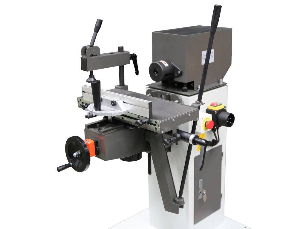 Najtežja vdolbina kalibra bo zadovoljila tudi najzahtevnejšega uporabnika. Masivna konstrukcija zagotavlja stabilnost in natančnost dela. Napajanje 400 V / 50 Hz, vhodna moč 2,2 kW, hitrost 2.860 vrt / min, vrtenje na levi strani, max. vpenjanje orodja 16 mm, največja višina vdolbine nad mizo 140 mm, največji vzdolžni hod mize 309 mm, maksimalno dvigalo mize 150 mm, dimenzije mize 500 × 207 mm. Izboljšana zasnova premikanja mize za fino gladko in natančno delovanje, odstranljivo stojalo zavzame manj prostora za shranjevanje, digitalno branje za natančen prikaz premikanja mize, omarica za orodje za priročno shranjevanje orodij in orodij. Dimenzije pakiranja 1.060 ×.550 ×.550 mm.
