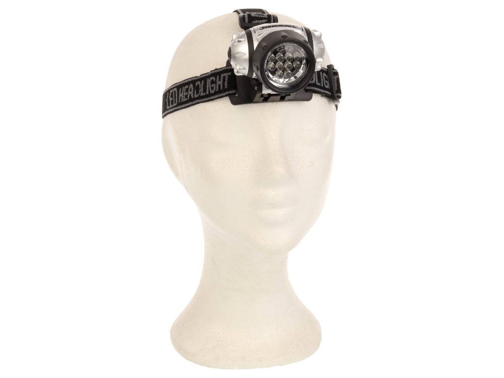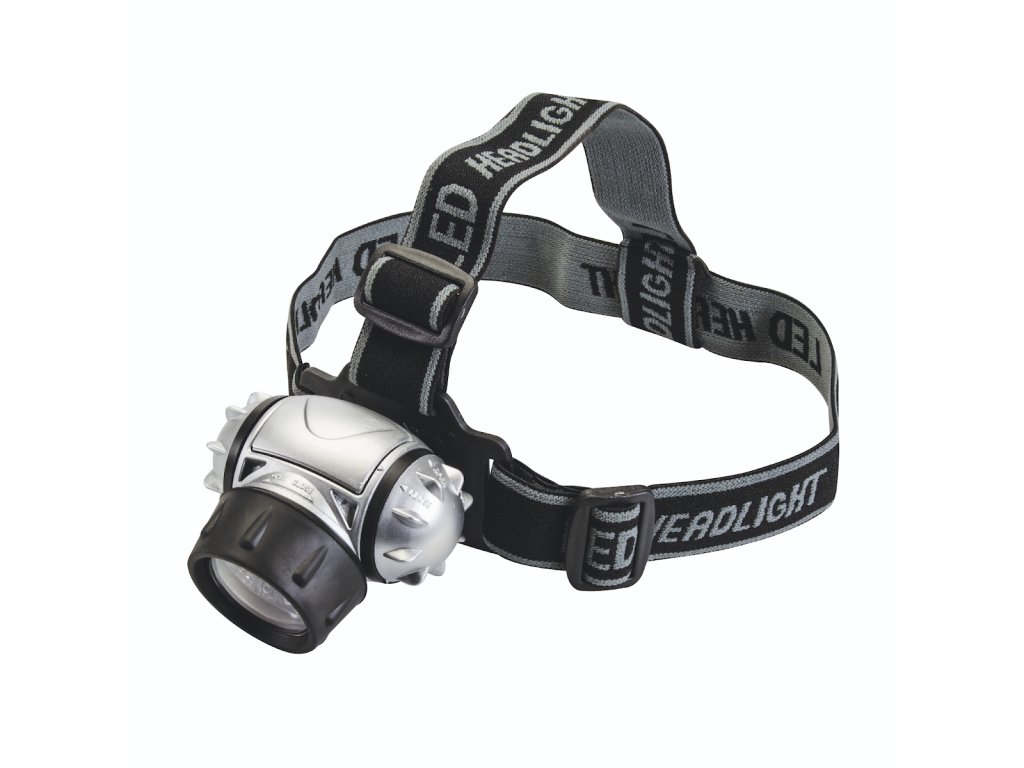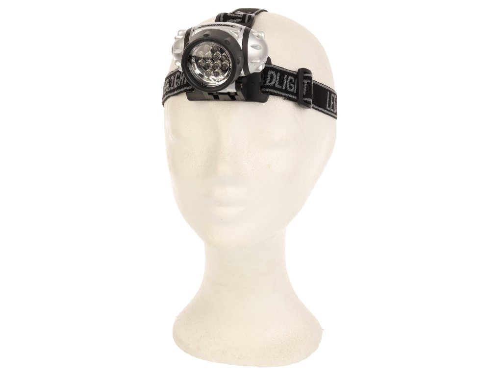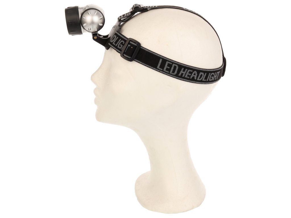 Praktična večnamenska luč s 4 načini: 4 LED (varčevanje z energijo), 8 LED, 12 LED in 12 LED utripajočimi diodami. Nedrseči naglavni trak ohranja svetilko na mestu. Nastavljiv svetlobni kot, vodoodporen, napajan s 3 × baterijami AAA, svetlobni tok 50 lumnov, dolžina 50 mm.