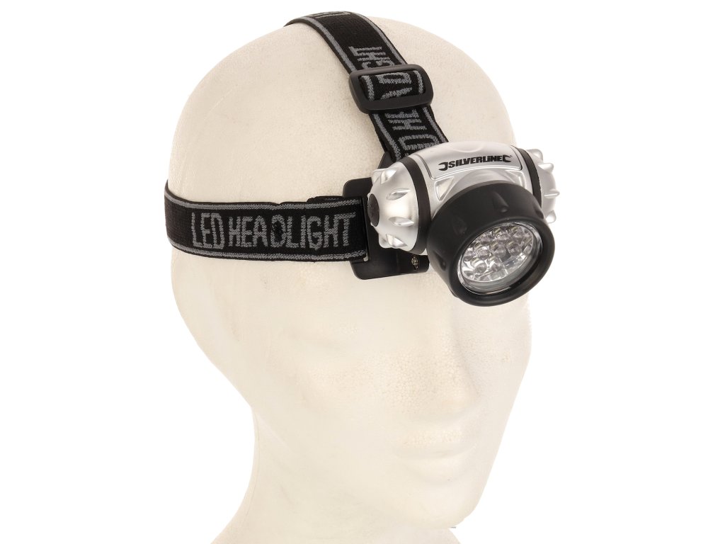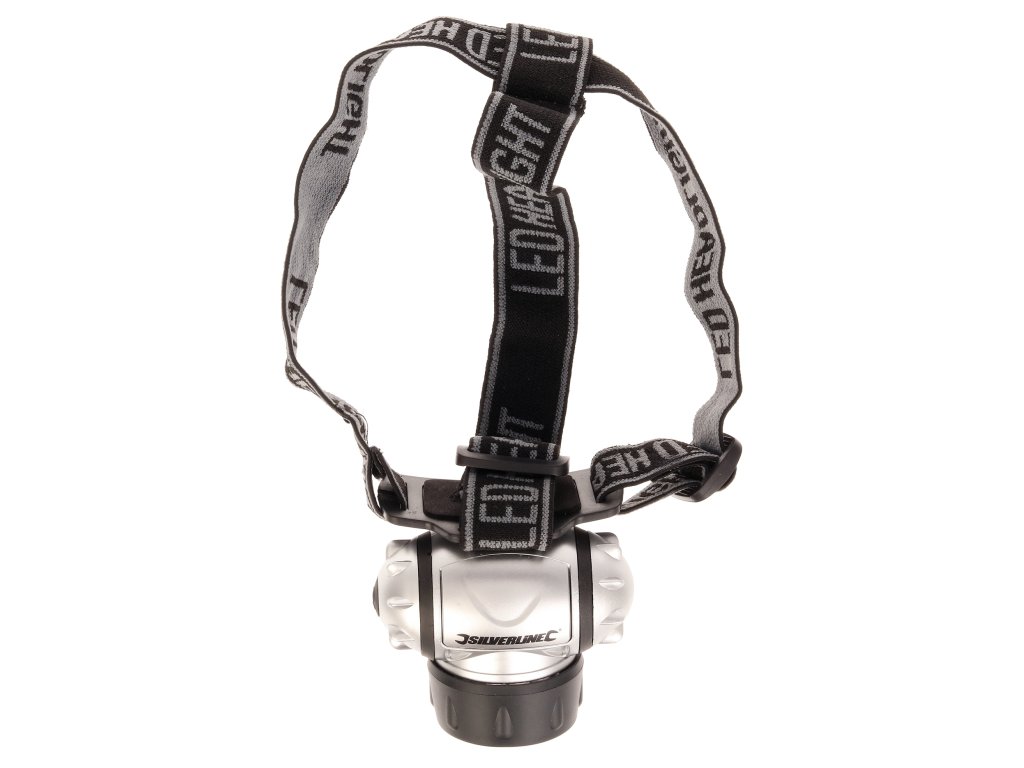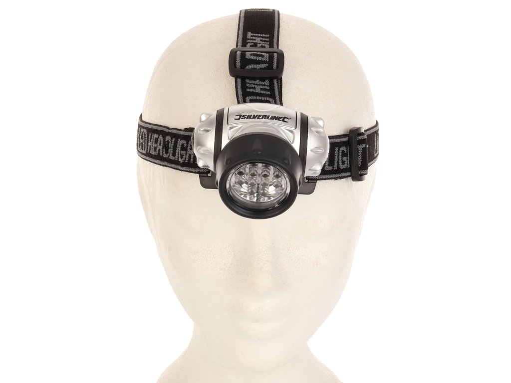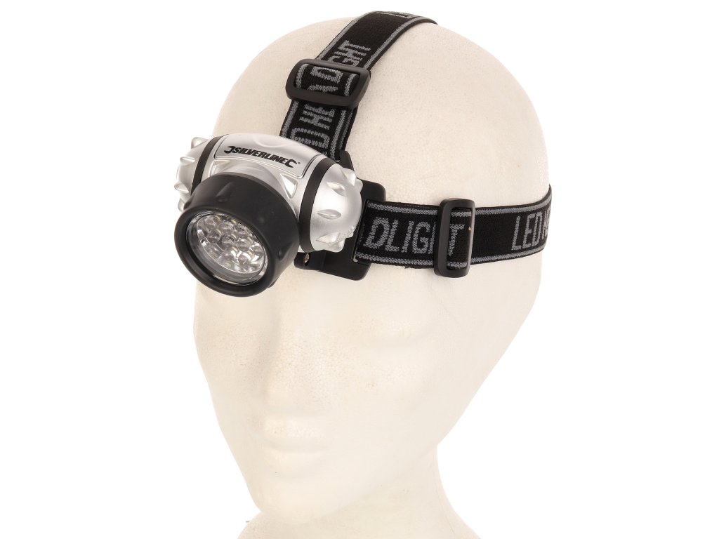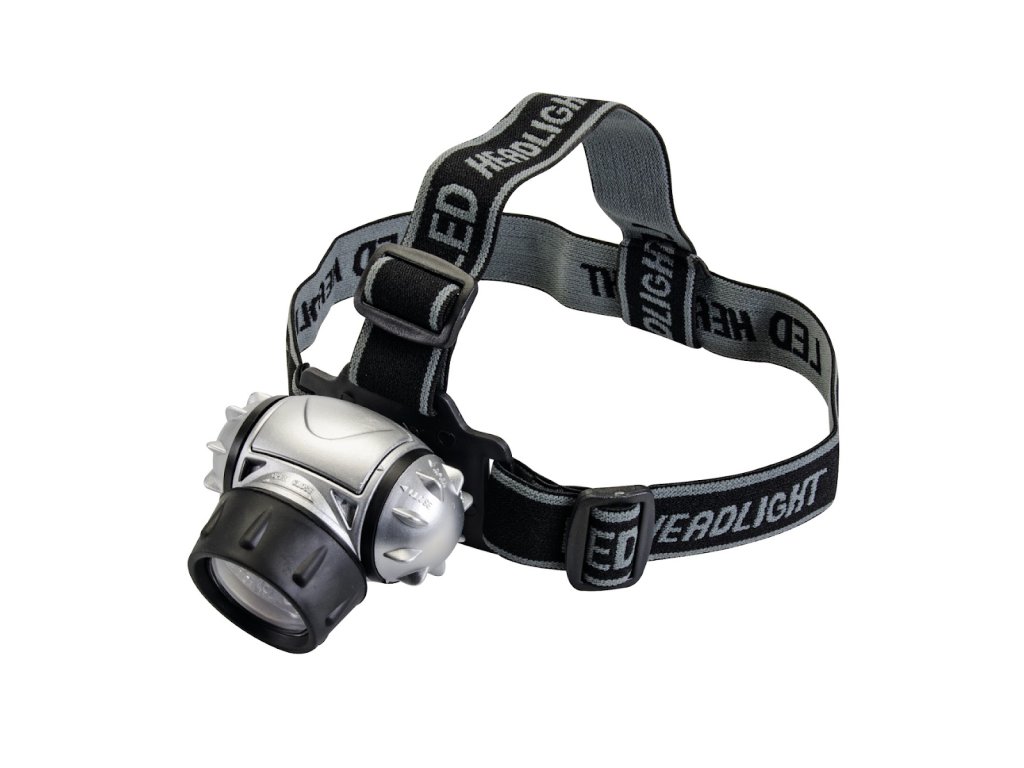 Praktična večnamenska luč s 4 načini: 4 LED (varčevanje z energijo), 8 LED, 12 LED in 12 LED utripajočimi diodami. Nedrseči naglavni trak ohranja svetilko na mestu. Nastavljiv svetlobni kot, vodoodporen, napajan s 3 × baterijami AAA, svetlobni tok 50 lumnov, dolžina 50 mm.