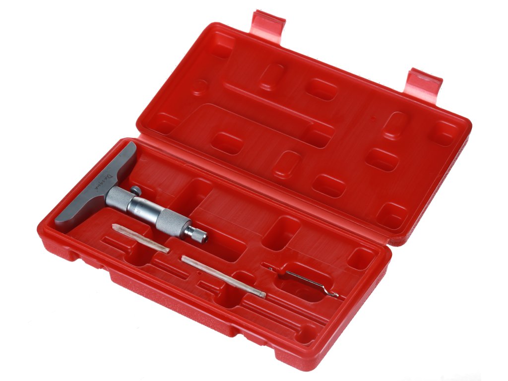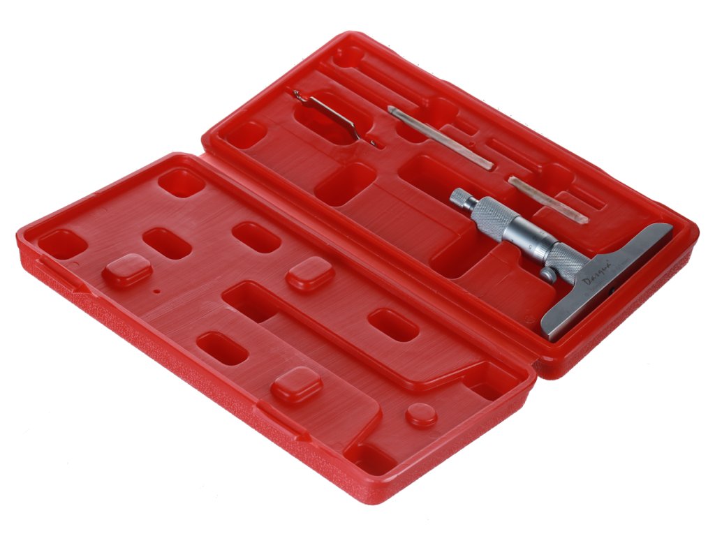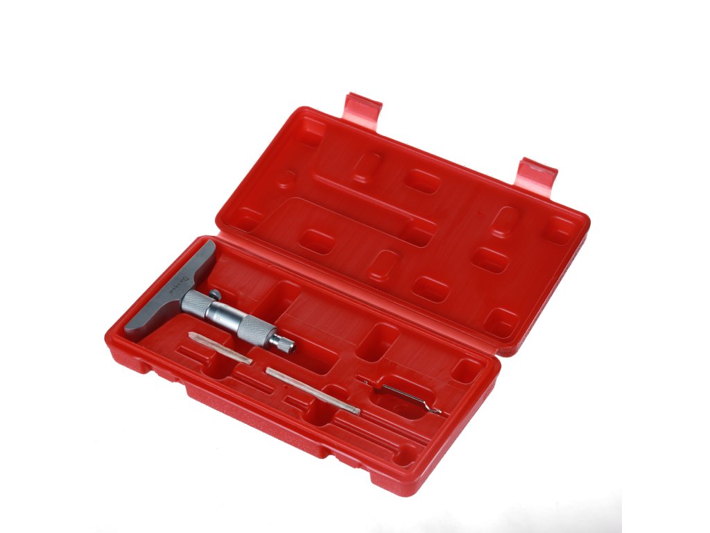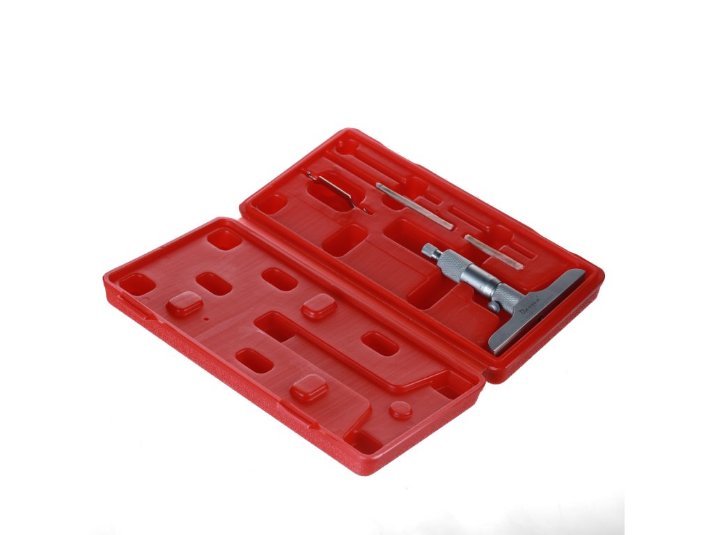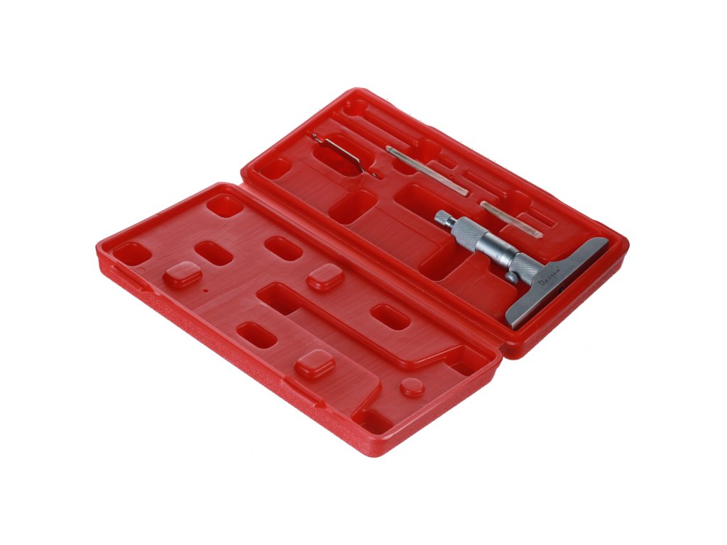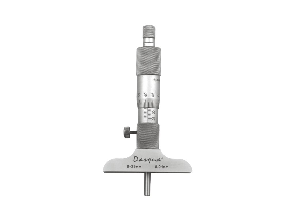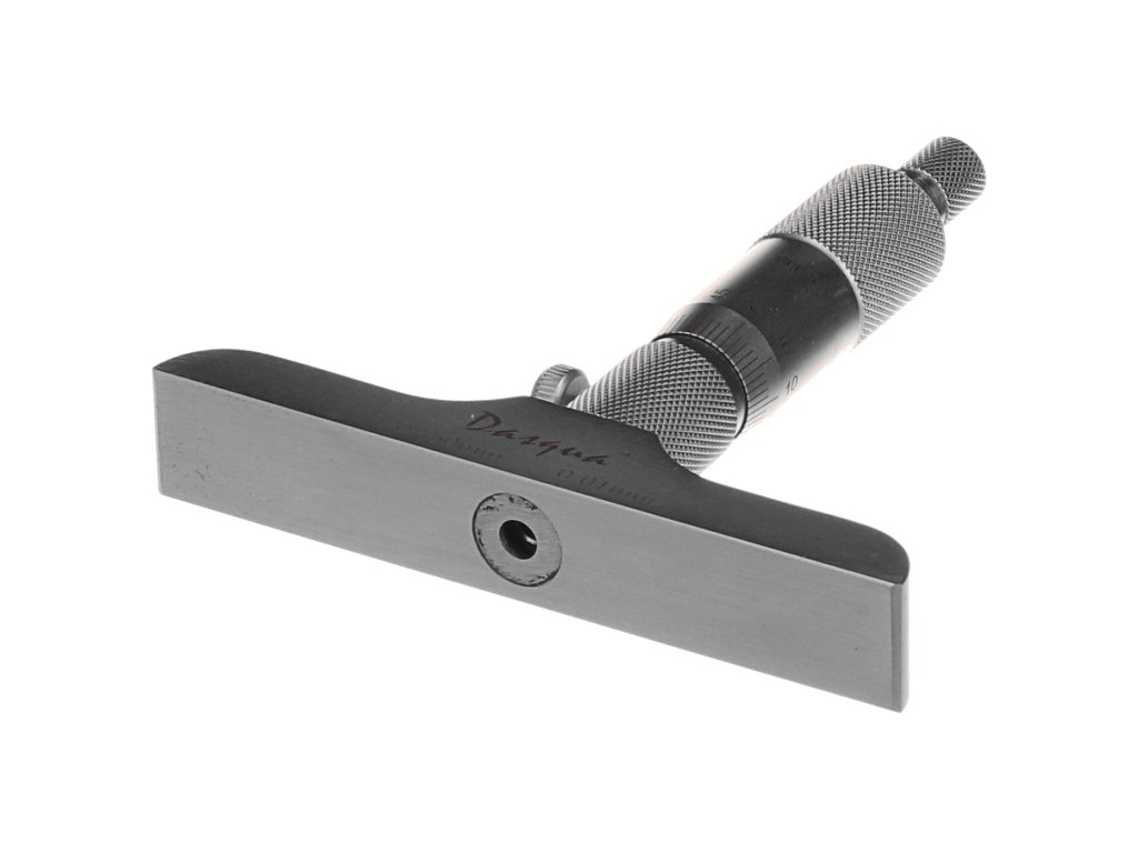 Merilnik globine mikrometra se uporablja za merjenje globine lukenj, razpok, vdolbin in vgradnih delov. Dva podaljška: 0-25 in 25-50 mm.
