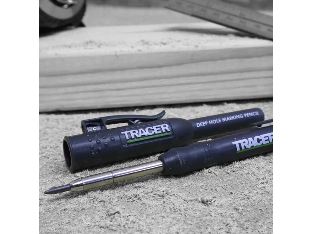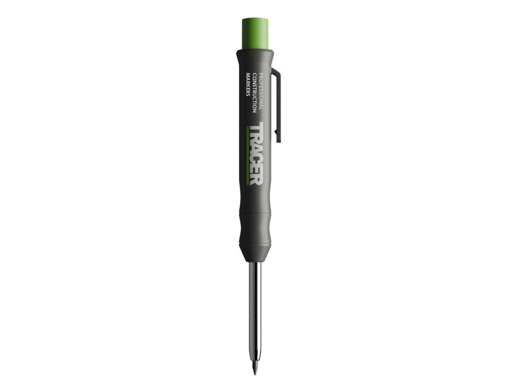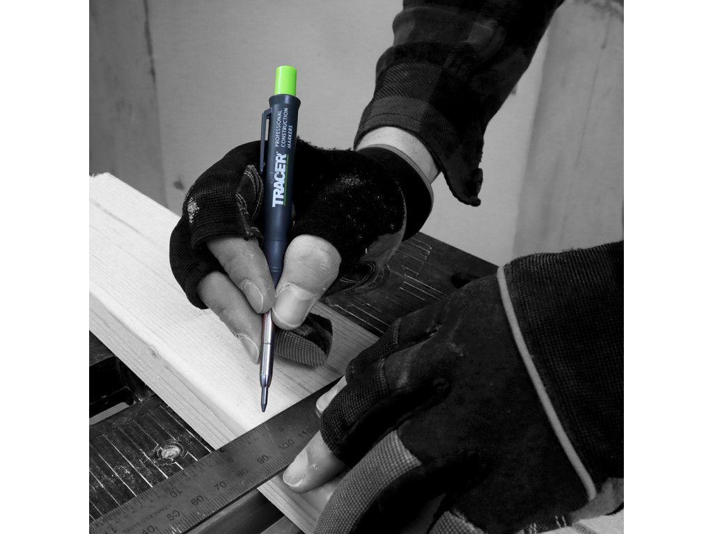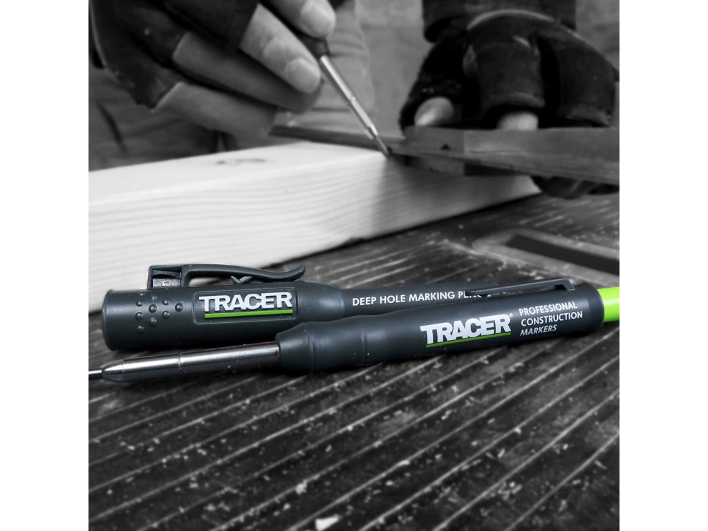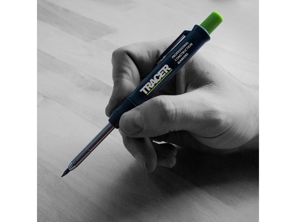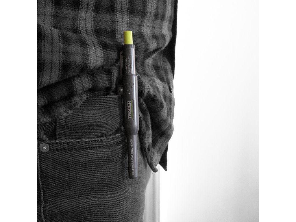 Vsestranski mizarski in zidarski svinčnik britanske blagovne znamke Tracer je edini svinčnik, ki ga boste želeli nositi s seboj kot obrtnik. Lahko piše na večini površin. Zahvaljujoč zložljivim in zamenljivim vodnikom dolžine 120 mm lahko s svinčnikom TRACER označite vse ozke in globoke luknje. Svinec se lahko izvrže z enim samim pritiskom. Pokrov s kavljem služi tudi kot ohišje, zaradi česar lahko s svinčnikom ravnate hitro in enostavno.