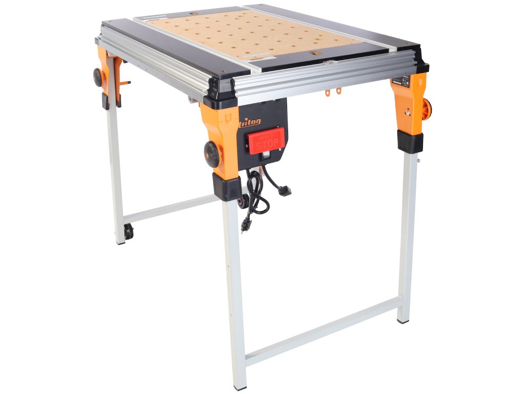 Univerzalna miza za obdelavo lesa z različnimi dodatki za široko paleto lesnoobdelovalnih dejavnosti. Glavno izolirano stikalo (3500 W) in vgrajena vtičnica za ožičenje električnih orodij; z gumbom za zaustavitev (Stop), ki ga upravlja koleno. Vključuje delovno ploščo z luknjami za pomivalna korita TWX7. Z moduli, ki so enostavni za uvajanje, lahko delovni center spremenite v stroj, ki ga potrebujete. Vključuje vijake za izravnavo nastavkov za enostavno kalibracijo ravnine, kar vam daje popolnoma ravno delovno površino. Pozicionirna kolesa olajšajo manevriranje tudi pri majhnih nastavitvah položaja. Prav tako ga je mogoče enostavno zložiti za prevoz ali skladiščenje. Na voljo so naslednji dodatki: rezkalni modul za delovni center TWX7 (št. naročila št. 265709), razširitev za mizo delovnega centra TWX7 (zaporedna št. 265901), razširitev za mizo delovnega centra TWX7 (zaporedna št. 266505 ) in modul žaga za TWX7 (zaporedna št. 255671 ). Velikost pakiranja: 1.045 ×.850 × 370 mm.