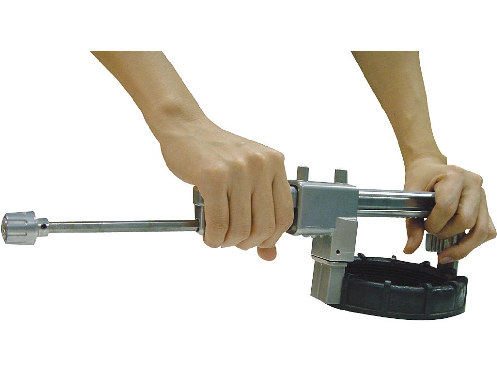 Nastavljiv ključ za montažo in demontažo pokrovov rezervoarjev. Ohišje iz aluminijeve zlitine, čeljusti iz ogljikovega jekla. Skupne dimenzije: 315 ×115 × 40 mm. Območje odpiranja 30 – 155 mm.