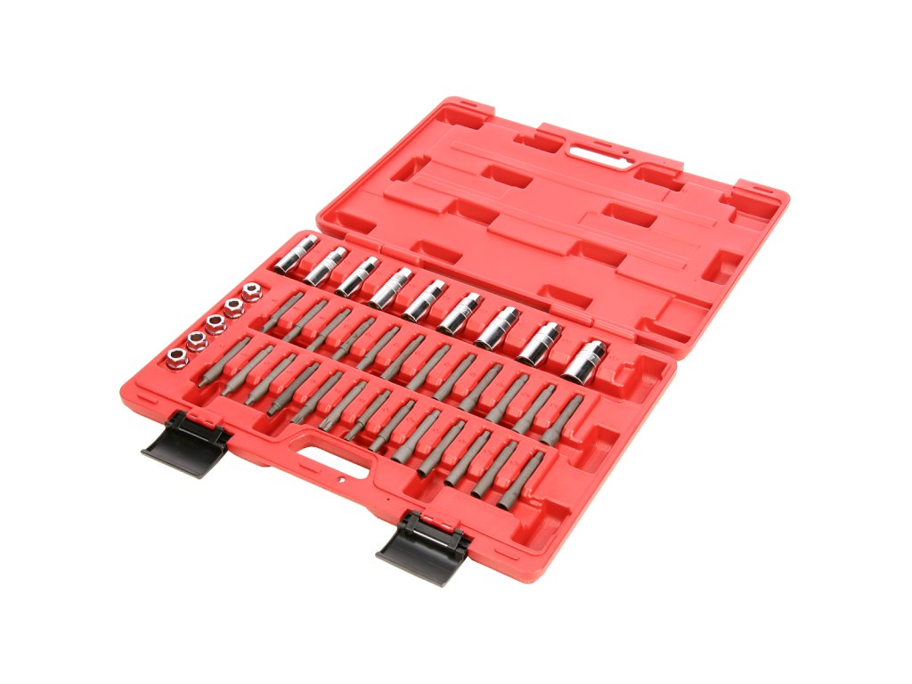 Komplet, ki je edinstveno zasnovan za lažje delo pri odstranjevanju in nameščanju amortizerjev. Široka variabilnost koncentričnih kombinacij ključev za vijak blažilnika matic zagotavlja večje udobje pri rokovanju za večino uporabljenih vrst. Uporablja se za: Nissan, Ford, BMW, Chrysler, Honda, Seat, Citroen, Fiat, Mercedes Benz (W203), Peugeot, Renault, VW, Audi, Opel, Volvo.