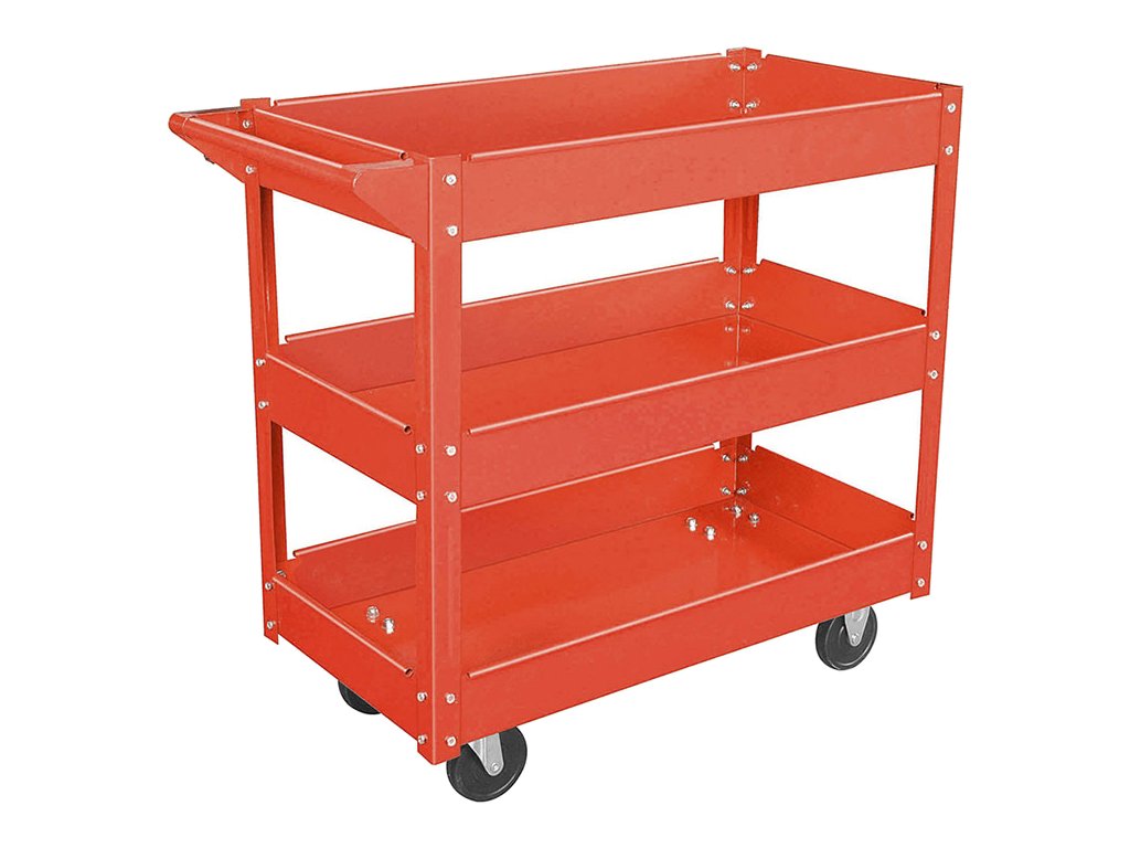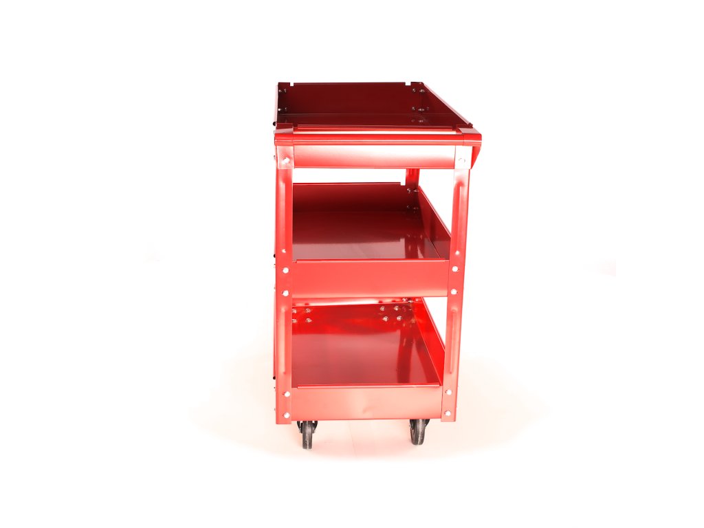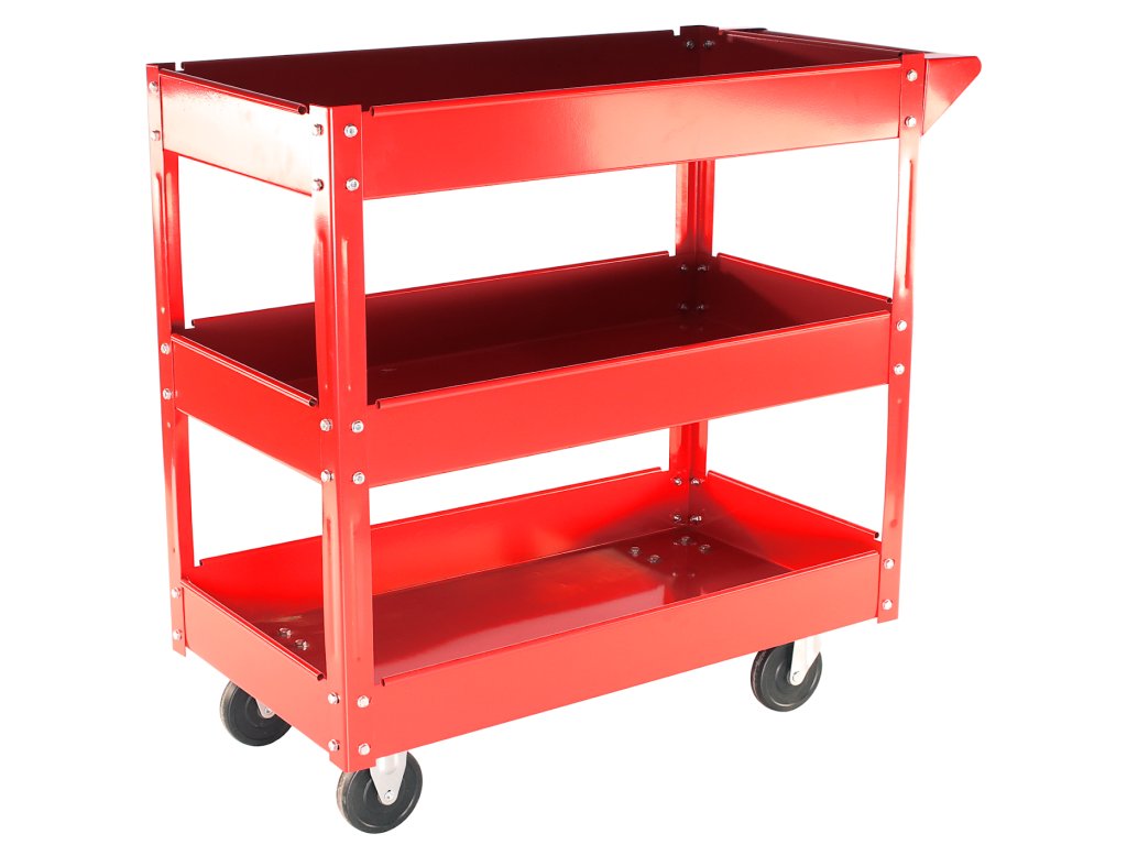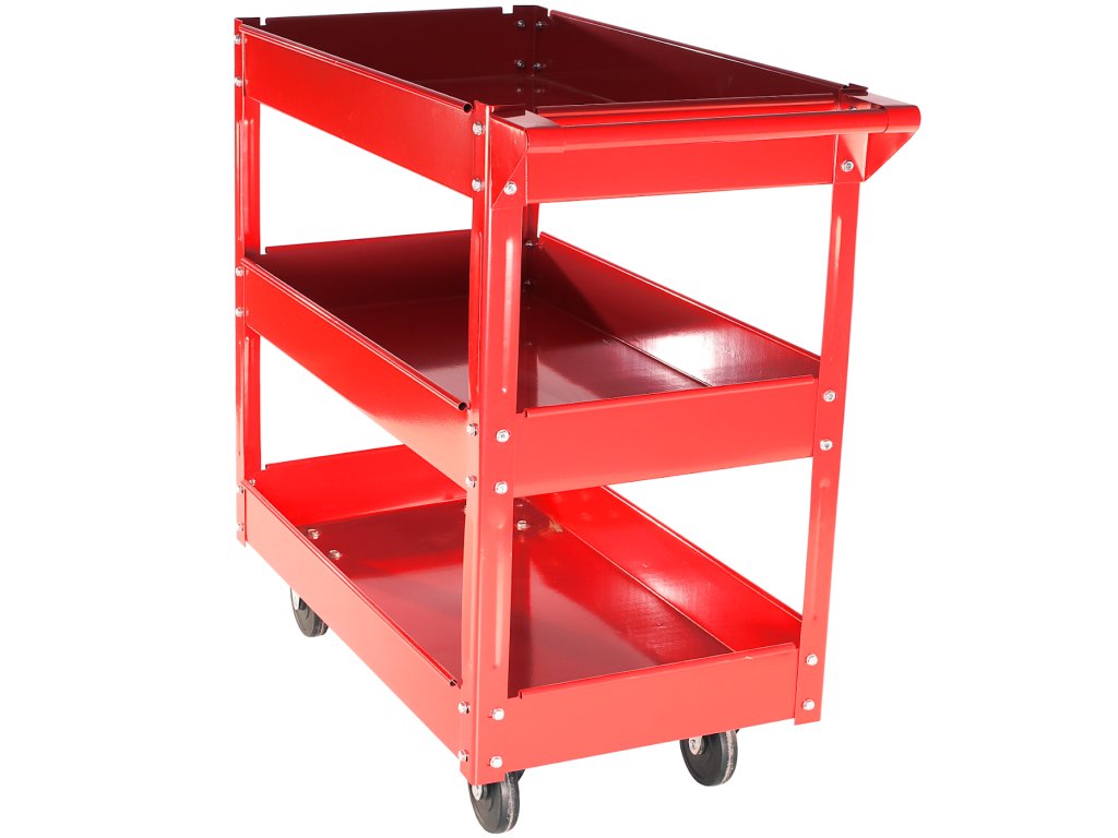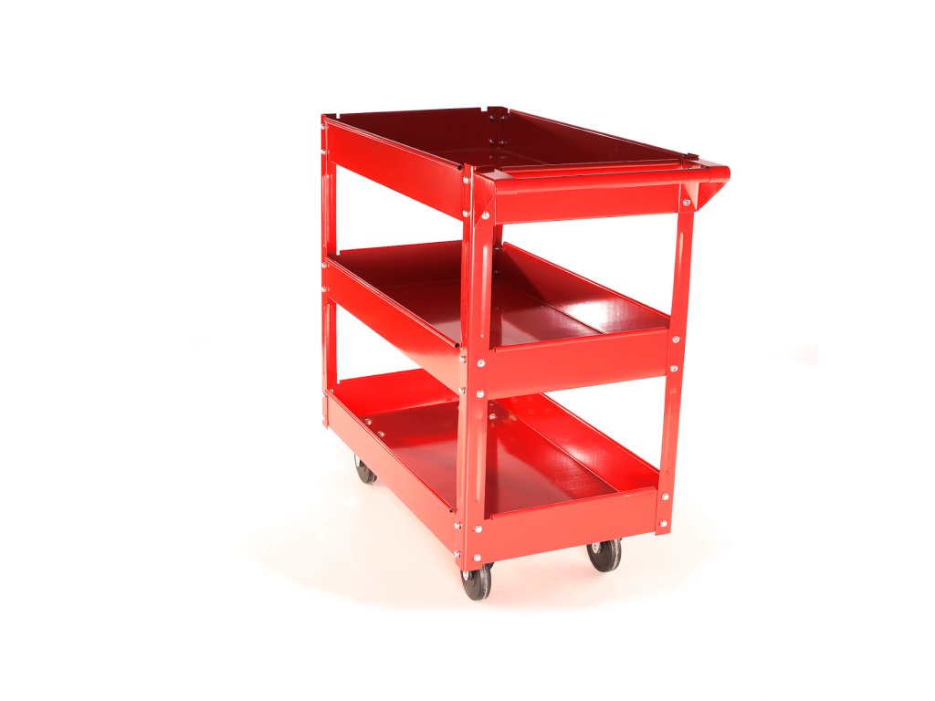 Primerno za shranjevanje montažnih in povezovalnih delov, orodja in drugih pripomočkov. Vsebuje 3 police iz pločevine 745 × 390 × 90 mm, med policami 200 mm, vijačne jeklene konstrukcije 840 × 410 × 660 mm, 2 vrtljivi in 2 fiksni kolesi 100 × 22 mm, skupne dimenzije 840 × 410 × 780 mm, skupna nosilnost 100 kg.