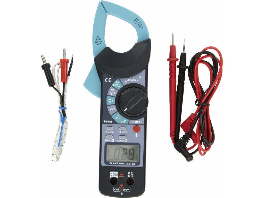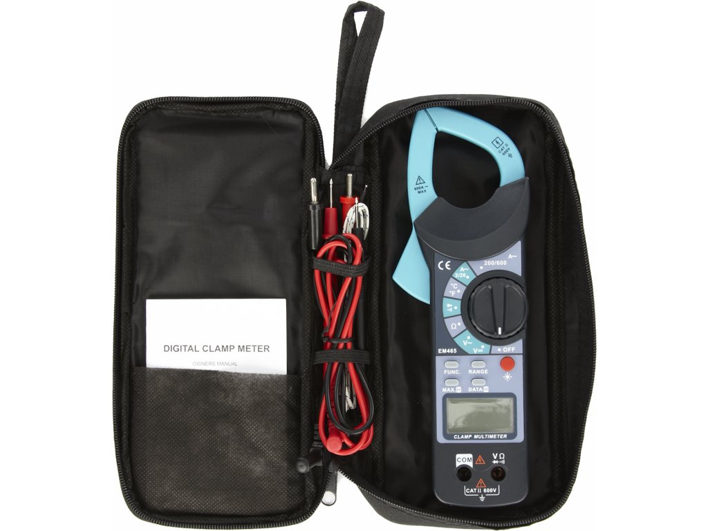 Večnamenska naprava za merjenje izmeničnega toka s posredno induktivno metodo, kot tudi upora, kontinuitete in temperature. Počistite LCD zaslon z osvetlitvijo ozadja. Samodejna/ročna izbira dosega, zaščita pred preobremenitvijo, signalizacija neprekinjenosti zvočnih vodnikov in funkcija zadrževanja. Napajalnik 2 × AAA baterija 1.5 V, enosmerna napetost 400 mV; 4 V; 40 V; 400 V; 1.000 V, izmenična napetost 400 mV; 4 V; 40 V; 400 V; 400 V; 750 V, izmenični tok 2; 20; 200; 600 A, upor 400 Ω; 4 kΩ; 40 kΩ; 400 kΩ; 4 MΩ; 40 MΩ, merjenje temperature - 20 - 1.000 °C, preskus kontinuitete: da < 30 Ω test diode: da 2,8 V/1 mA. Dimenzije 77 × 230 × 32 mm. Obseg dobave: merilni instrument, baterija, ohišje.
